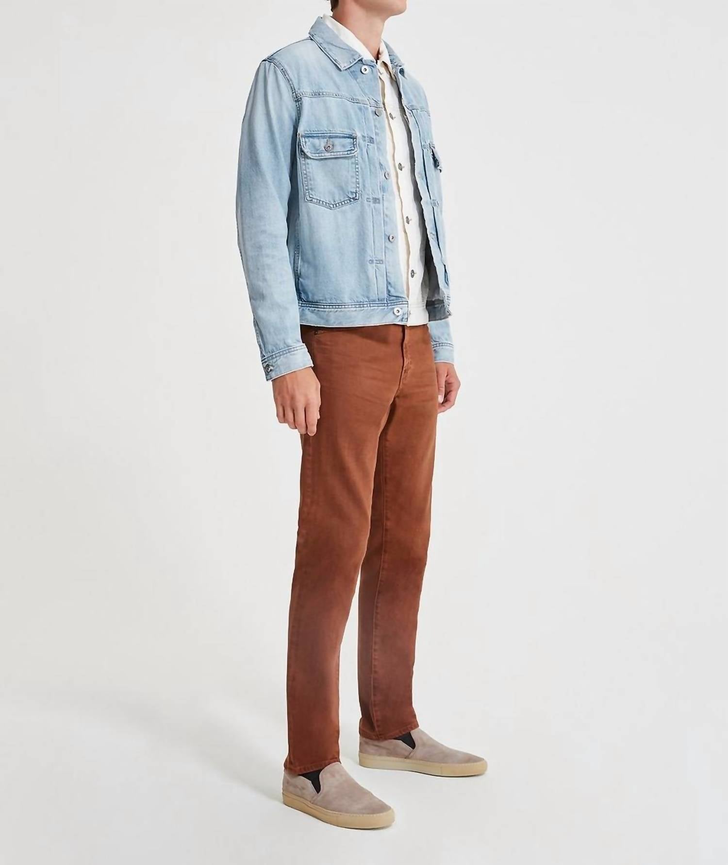 A calça jeans Tellis Modern Slim masculina apresenta uma autêntica lavagem de jeans tawny quente, com 7 anos de idade, que foi excepcionalmente desgastada e desbotada para imitar um par de jeans vintage genuíno. A Tellis tem um corte com um bloco superior ajustado e abertura afunilada nas pernas. Esta calça masculina é confeccionada em jeans leve com elasticidade confortável e acabamento com ferragens clean. Jeans Dover Stretch de 280 g, 98% algodão, 2% poliuretano. O modelo tem 1,88 m e veste tamanho 30. Gancho frontal: 24 cm. Abertura do joelho: 40 cm. Abertura da parte inferior: 35 cm. Costura interna: 84 cm. Tamanho real. Lavagem à máquina com água fria.