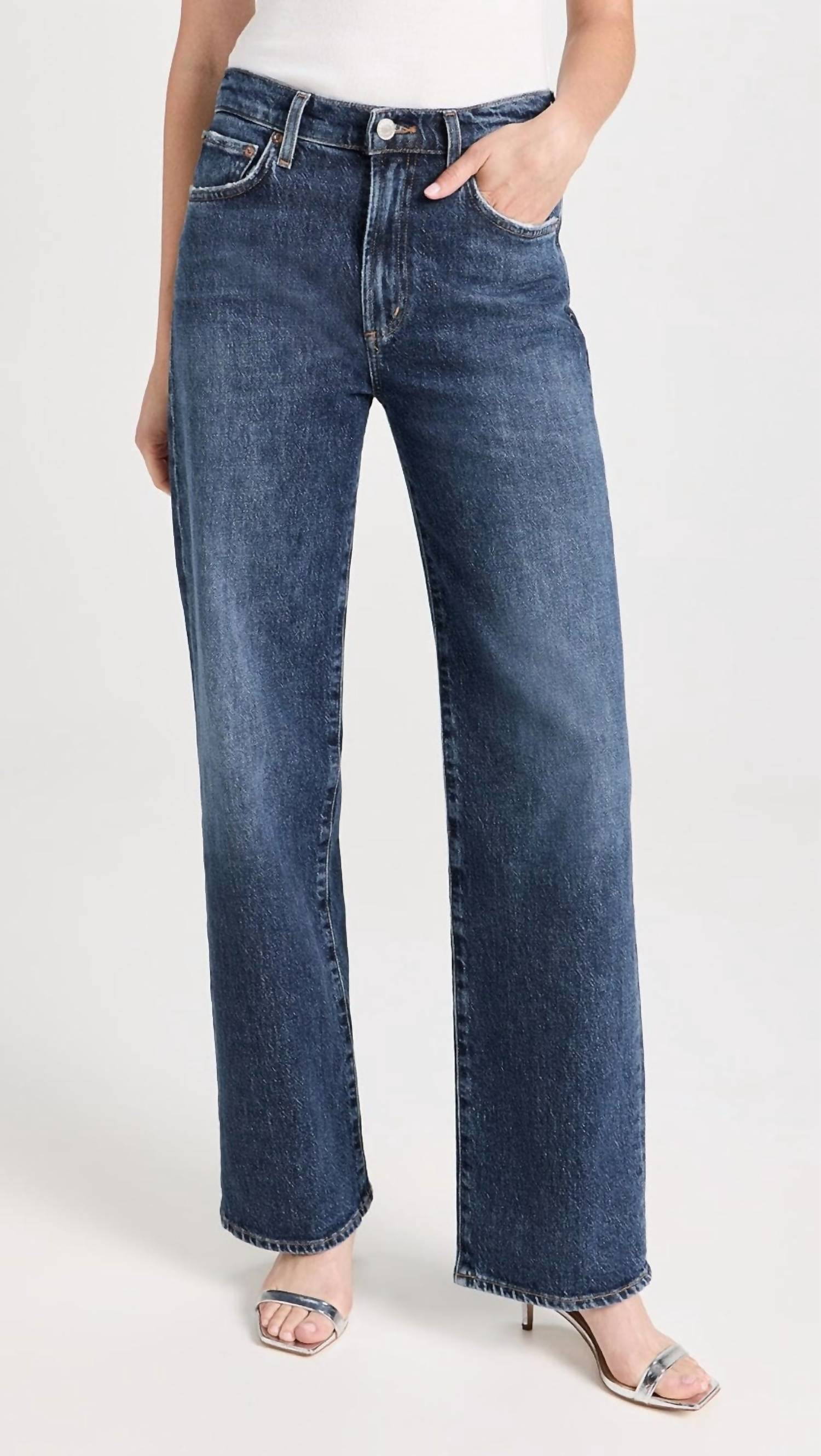 Just as cute as they are comfortable. Introducing the Harper Wide-Leg Jeans by AGOLDE in the Tempo color, a nod to 90s fashion with a modern twist. These jeans feature a substantial wide-leg cut and medium wash denim with fading and whiskering for added texture. Crafted from a blend of 88% cotton, 11% recycled cotton, and 1% elastane, they offer a low-stretch fit that keeps its shape. Originating from Turkey, these full-length jeans have a mid-rise waist and button closure, complete with five-pocket styling, making them perfect for a summer dinner party. Care instructions include machine wash and tumble dry, with dimensions of 11 inches rise, 31.5 inches inseam, and 19 inches leg opening, ensuring a perfect fit for any occasion.