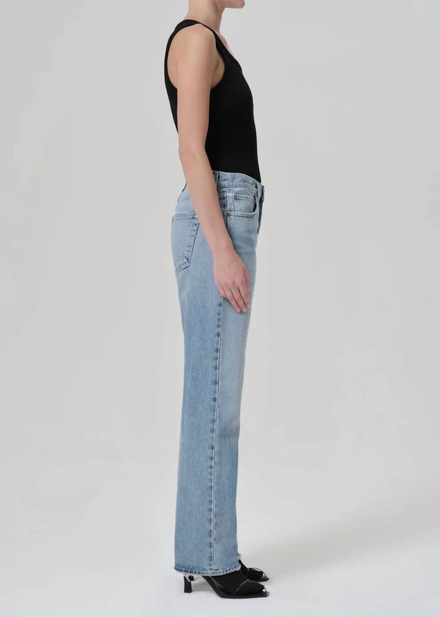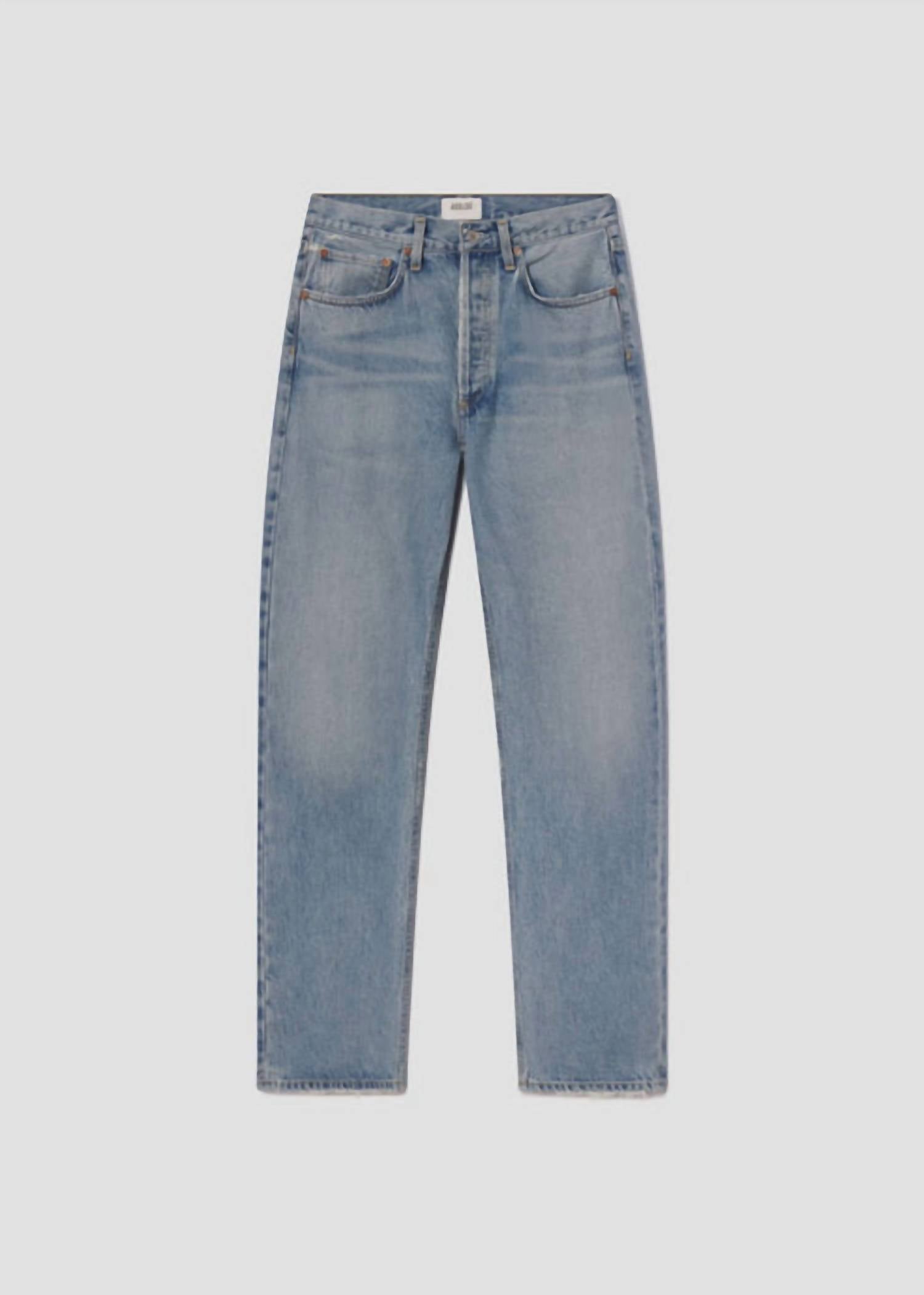 A skinny jean that is both flatering and comfortable. We love this style because it works great with boots, or without! Introducing the Kelly Jeans by AGOLDE, a chic pair crafted from 100% regenerative cotton, designed to complement any wardrobe. These women's jeans feature a high-rise waist with an 11.25" rise, a relaxed top block, and fall into a classic straight leg with a 32" inseam for a modern fit. Made in Turkey, the medium vintage indigo color harmonizes beautifully with the natural fading and subtle marbling, offering a worn-in aesthetic. Closure is secure with a button fly, and you can maintain their longevity with machine wash cold inside out, avoiding bleach, and tumble drying on low.