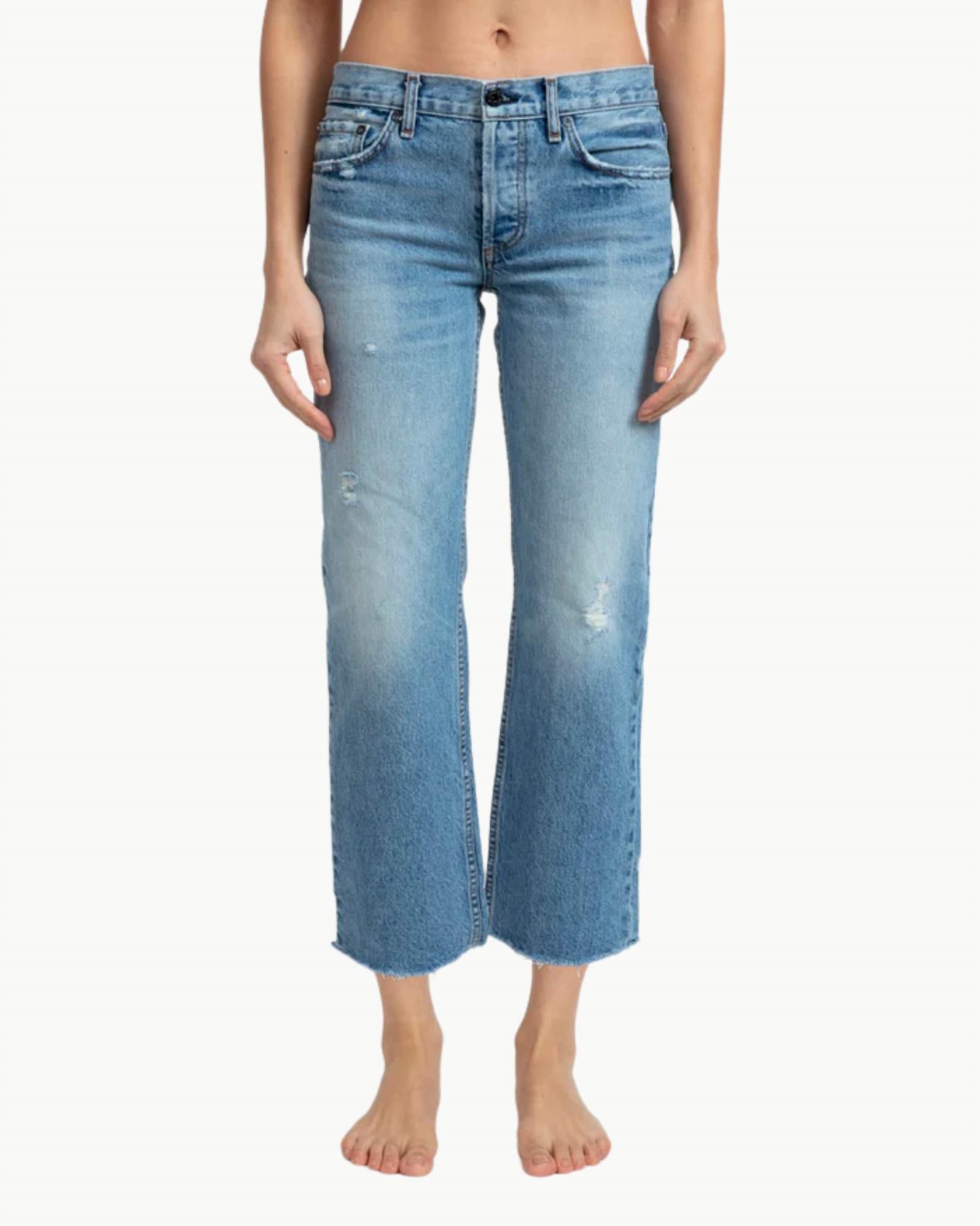 This classic straight leg jean has a perfect fit and goes with just about everything. Experience effortless style with the Low Rise Straight Leg Jeans by ASKK NY, perfect for a laid-back yet modern look. Crafted from 100% cotton in premium 11 oz. Japanese denim, they feature an 8.5" low-rise waist and a chic raw hem. This medium-wash, five-pocket jean comes with a zipper fly closure, ensuring both style and functionality. Designed with a relaxed fit for everyday wear, it is made in the USA and can be machine washed cold separately; do not tumble dry.