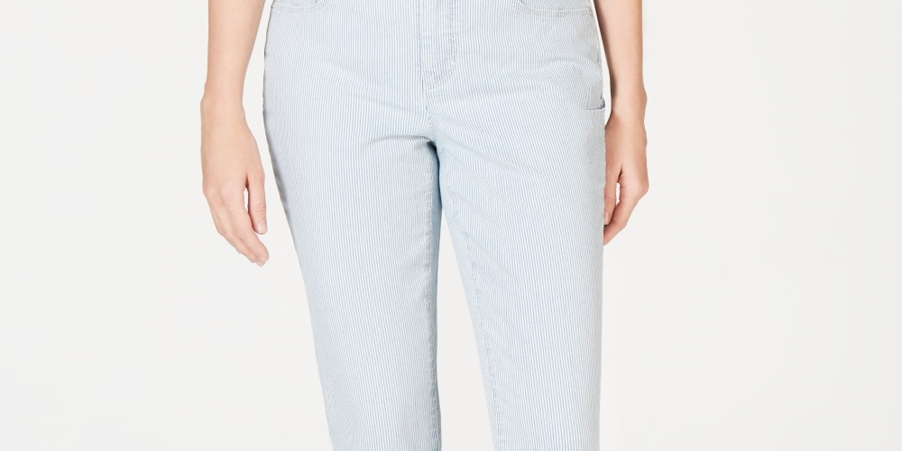 Calça jeans skinny feminina Charter Club com controle de barriga listrada, azul, tamanho 8