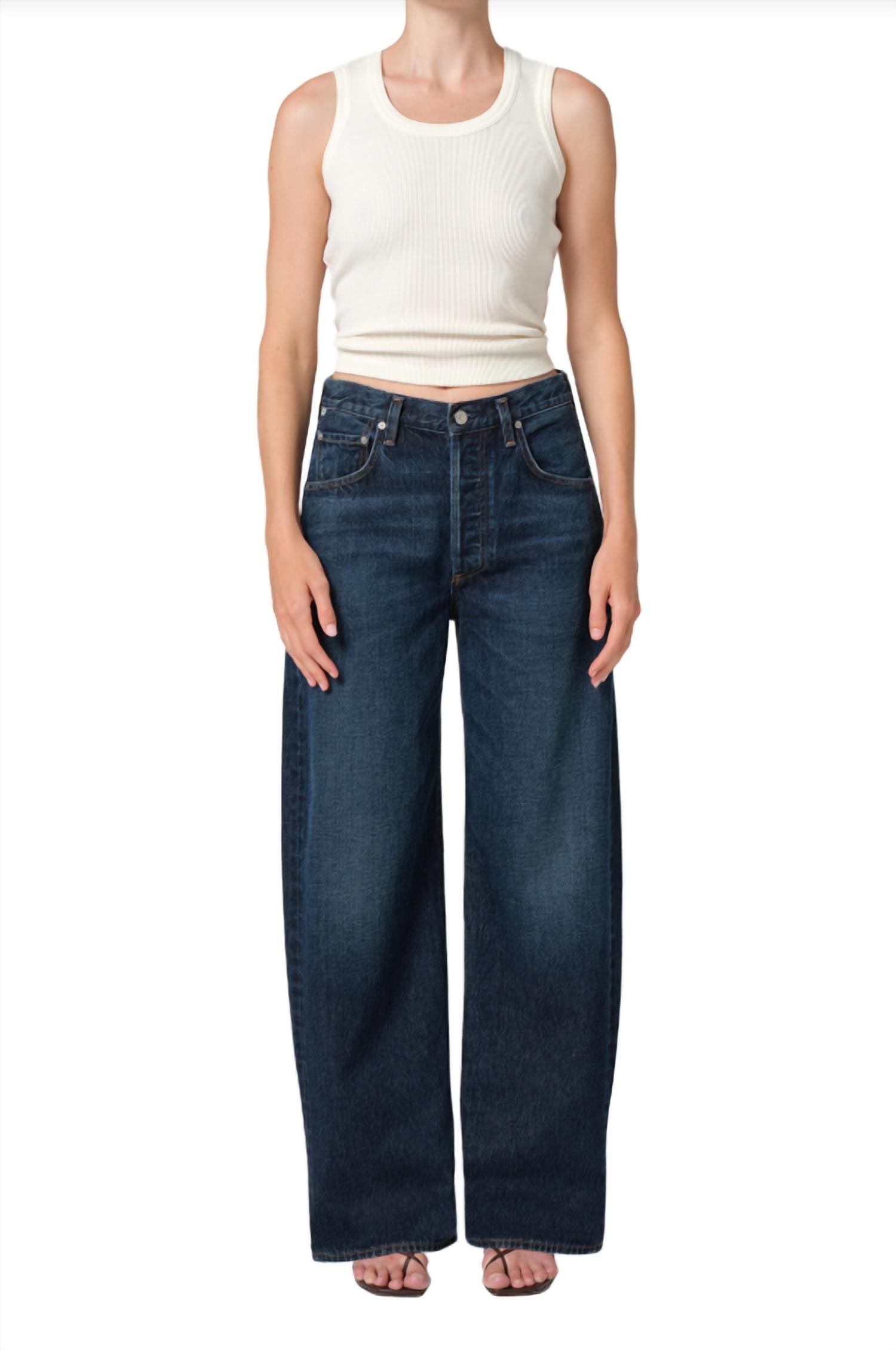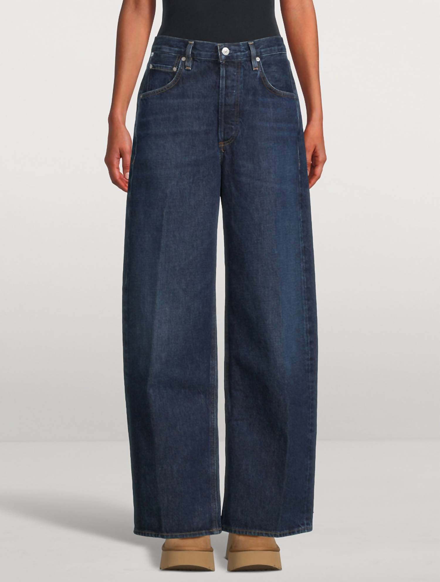Apresentamos a Calça Jeans Ayla Baggy da Citizens of Humanity, confeccionada em 100% algodão regenerativo para uma opção sustentável no seu guarda-roupa. Esta calça jeans Costa Brava apresenta um corte relaxado com um bloco superior elegante que se transforma em uma perna larga e espaçosa, oferecendo versatilidade com punhos e sem punhos. Aproveite a praticidade do fecho de botão e dos bolsos, e aproveite a praticidade com lavagem à máquina com água fria, do avesso, e secagem em temperatura baixa. Eleve seu look streetwear com este jeans de lavagem escura e cintura média, perfeito para a primavera e ocasiões especiais como o Réveillon ou aniversários.