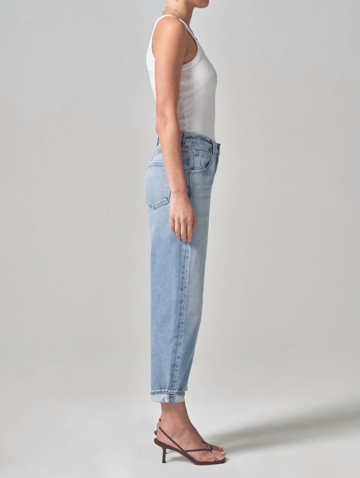 Descubra a Calça Jeans Baby Roll Dahlia Bow Leg da Citizens of Humanity, a personificação perfeita da elegância casual em uma charmosa cor Ribbon. Com cintura alta e perna larga e arqueada, esta calça jeans oferece uma silhueta de inspiração vintage. Confeccionada em 100% algodão regenerativo, oferece um toque denim rígido e sem elasticidade, com fecho clássico de botão. Fácil de cuidar: basta lavar na máquina e secar na secadora para manter seu visual atemporal.