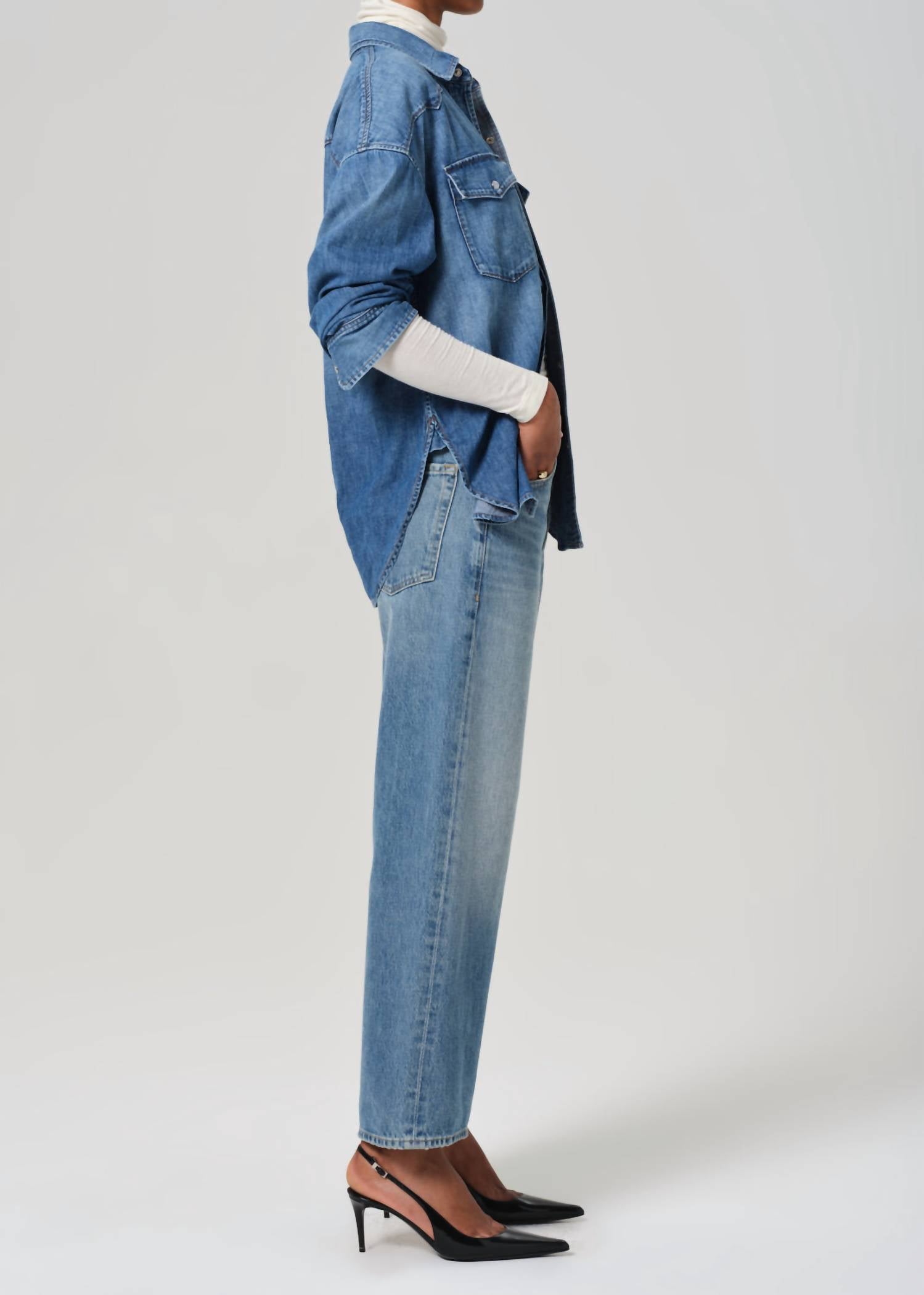 The Gaucho Vintage Wide Leg Jeans by Citizens of Humanity are a stylish nod to retro fashion, crafted for effortless elegance in Sodapop. These high-rise jeans, made from 100% regenerative cotton, offer a relaxed fit with a loose, wide leg silhouette and feature a button fly closure. They boast a 12.75" rise, 26.5" inseam, and 21" leg opening, showcasing organic, midweight non-stretch denim with a light wash and slight fading. Care for these jeans by machine washing cold inside out with like colors. Made in the USA with imported materials, they're perfect for women looking to embrace the streetwear trend this summer.