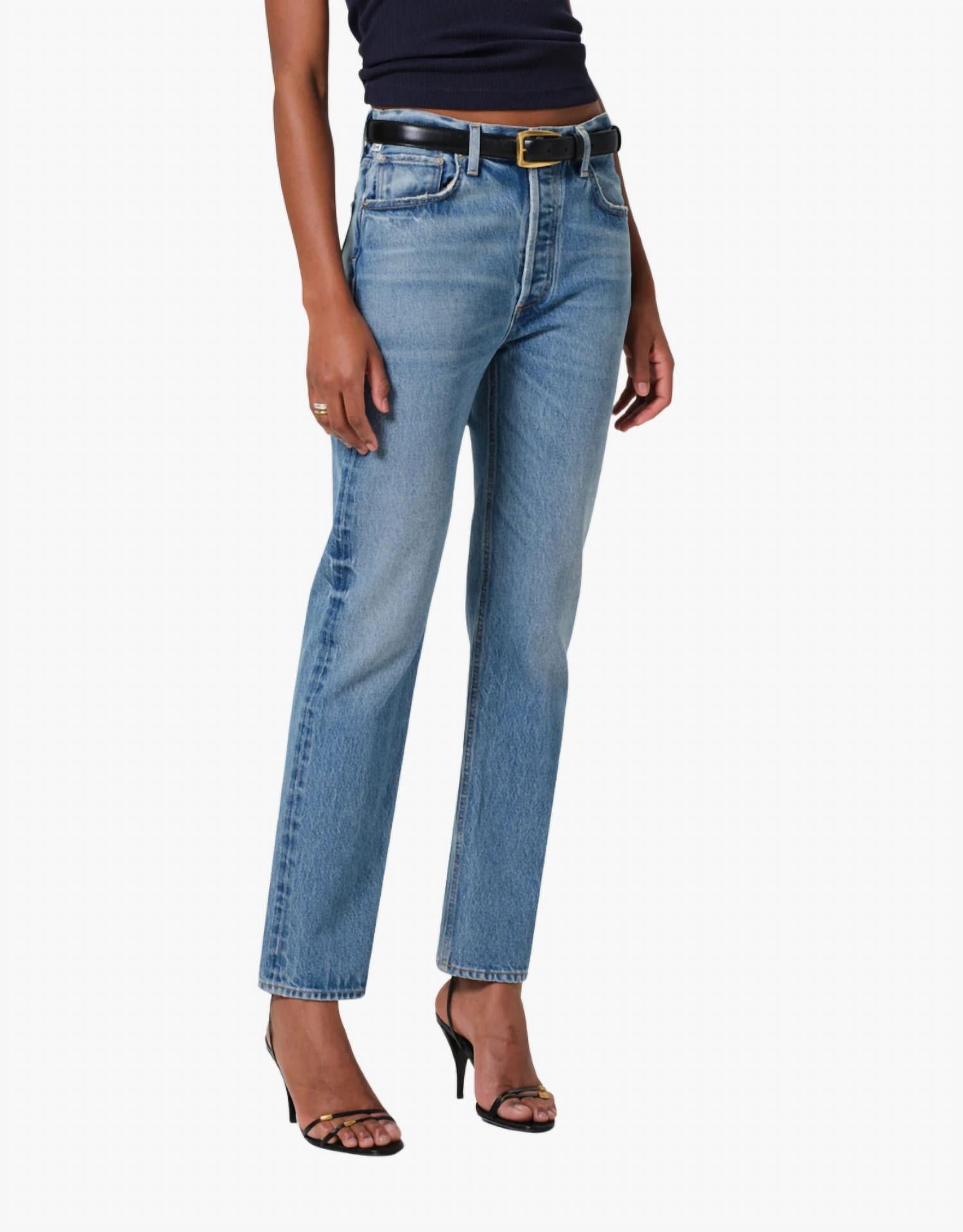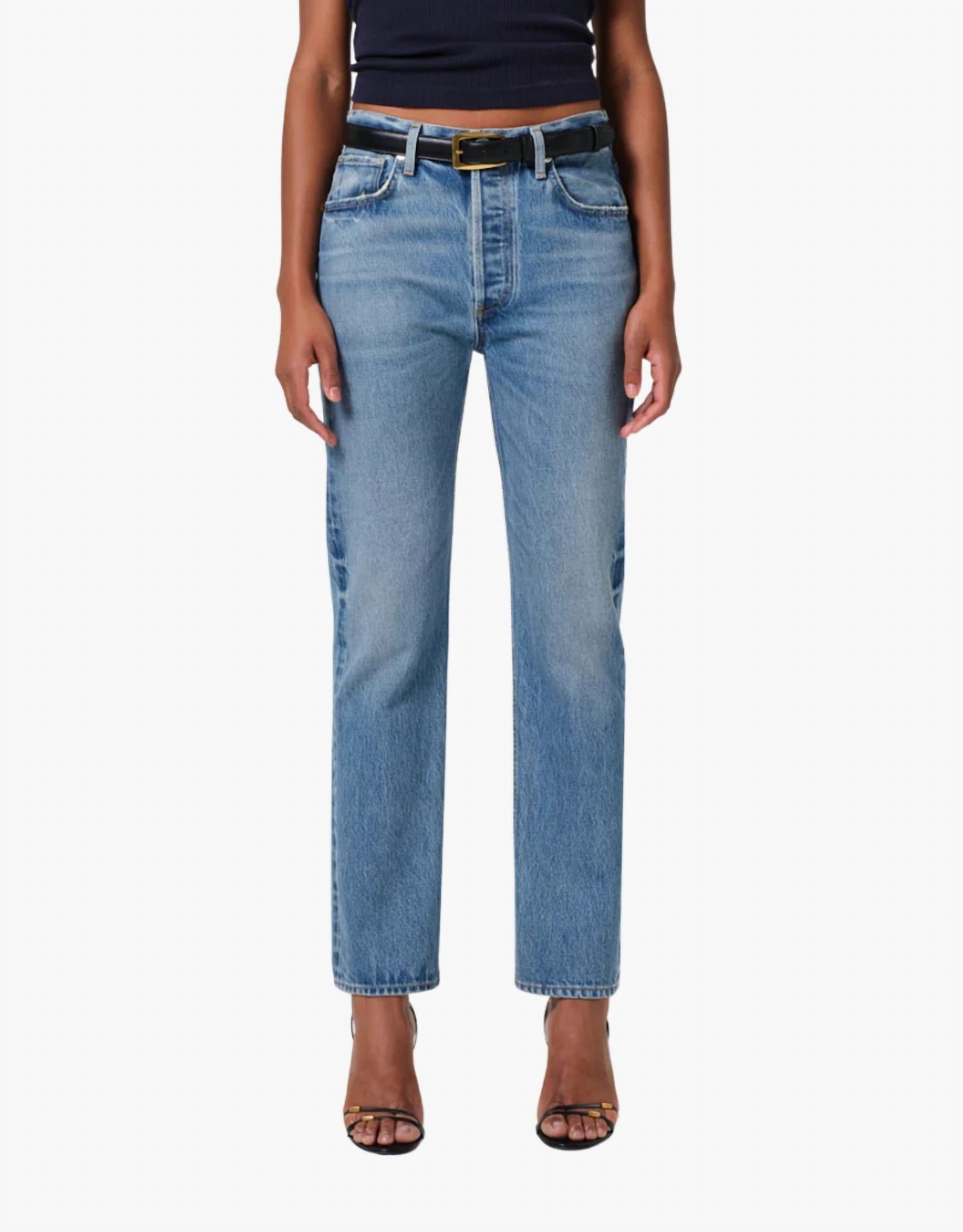 A cintura alta veio para ficar e nós amamos especialmente esse estilo. Descubra o Blaine Jean da Citizens of Humanity, a escolha perfeita para um look streetwear estiloso em Perri, um tom índigo claro. Confeccionado em 100% algodão regenerativo, este jeans oferece um caimento relaxado com corte reto e cintura alta com 29 cm de comprimento. A versátil costura interna de 73 cm e o fecho de botão tornam este jeans de lavagem média perfeito para usar na primavera, comemorando ocasiões especiais como aniversários ou o Natal. Cuide deste jeans com estampa lisa lavando-o à máquina com água fria, do avesso, e secando em temperatura baixa.