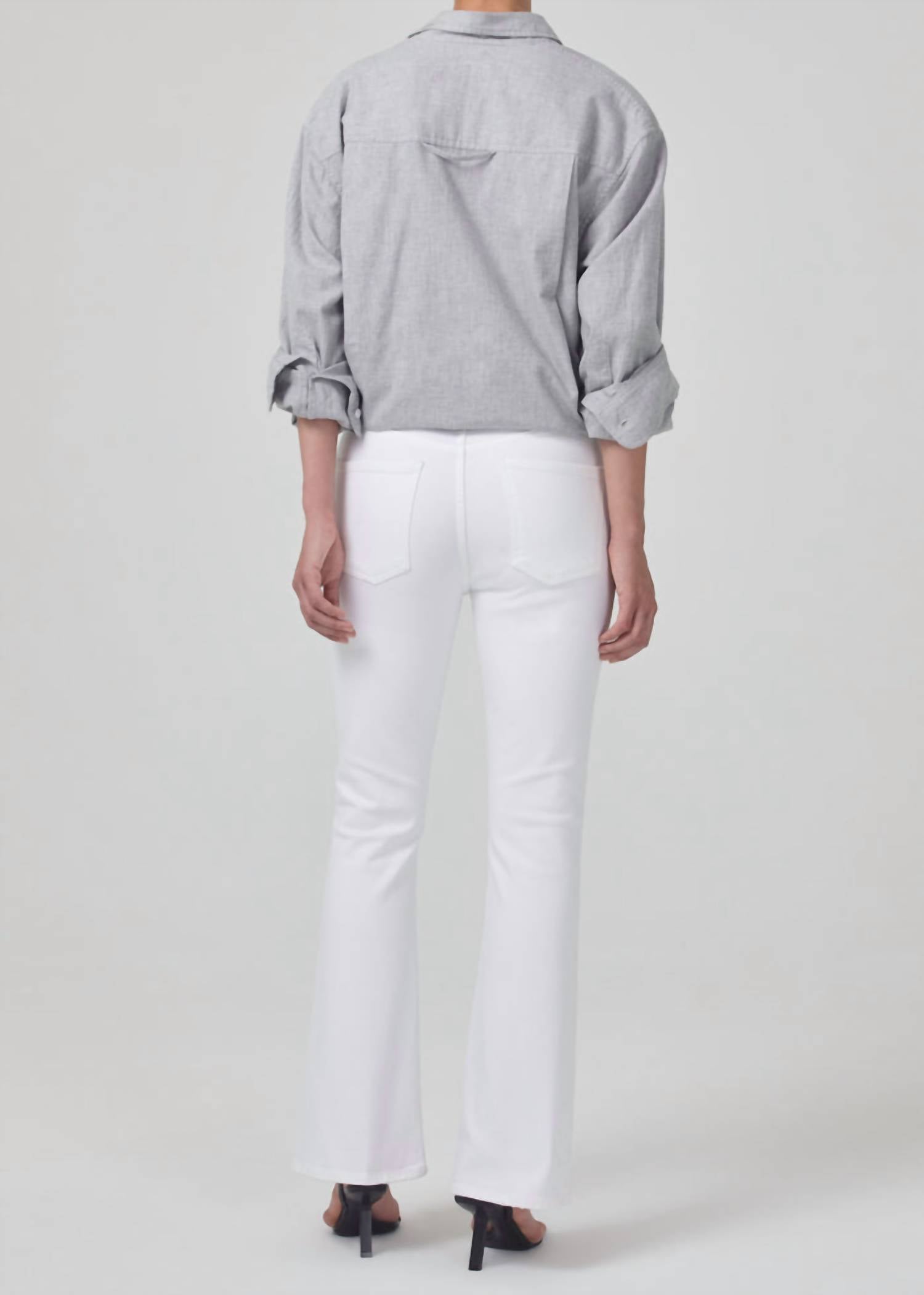 Esses jeans indispensáveis ​​têm um caimento perfeito. Experimente a elegância atemporal dos anos 70 com a Calça Jeans Lilah Slim da Citizens of Humanity, uma versão moderna do glamour retrô. Com um corte justo e elegante nas coxas e um elegante flare na barra, esta calça jeans em cores vibrantes é ideal para alongar as pernas. Composta por 59% algodão orgânico, 40% viscose Ecovero e 1% elastano, garante uma combinação de conforto e estilo. Com cós alto de 28 cm, costura interna de 76 cm e abertura de 50 cm, esta calça jeans é confeccionada na Turquia e possui um padrão sólido. Fechamento: Fecho de zíper. Cuidados: Lavar à máquina com água fria, do avesso, com cores semelhantes, não usar alvejante e secar em temperatura baixa. A modelo tem 1,78 m e veste tamanho 27.