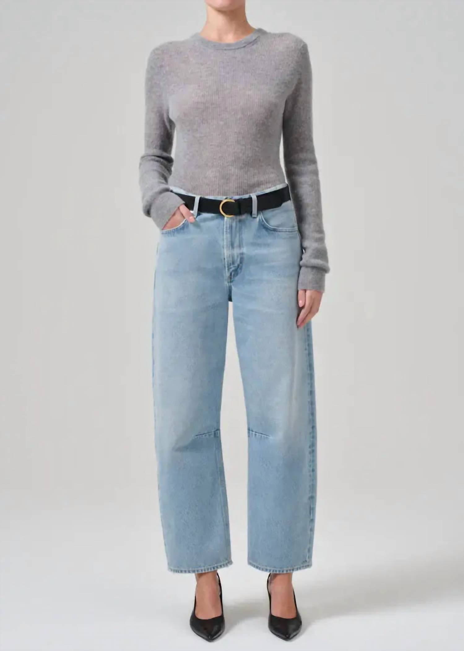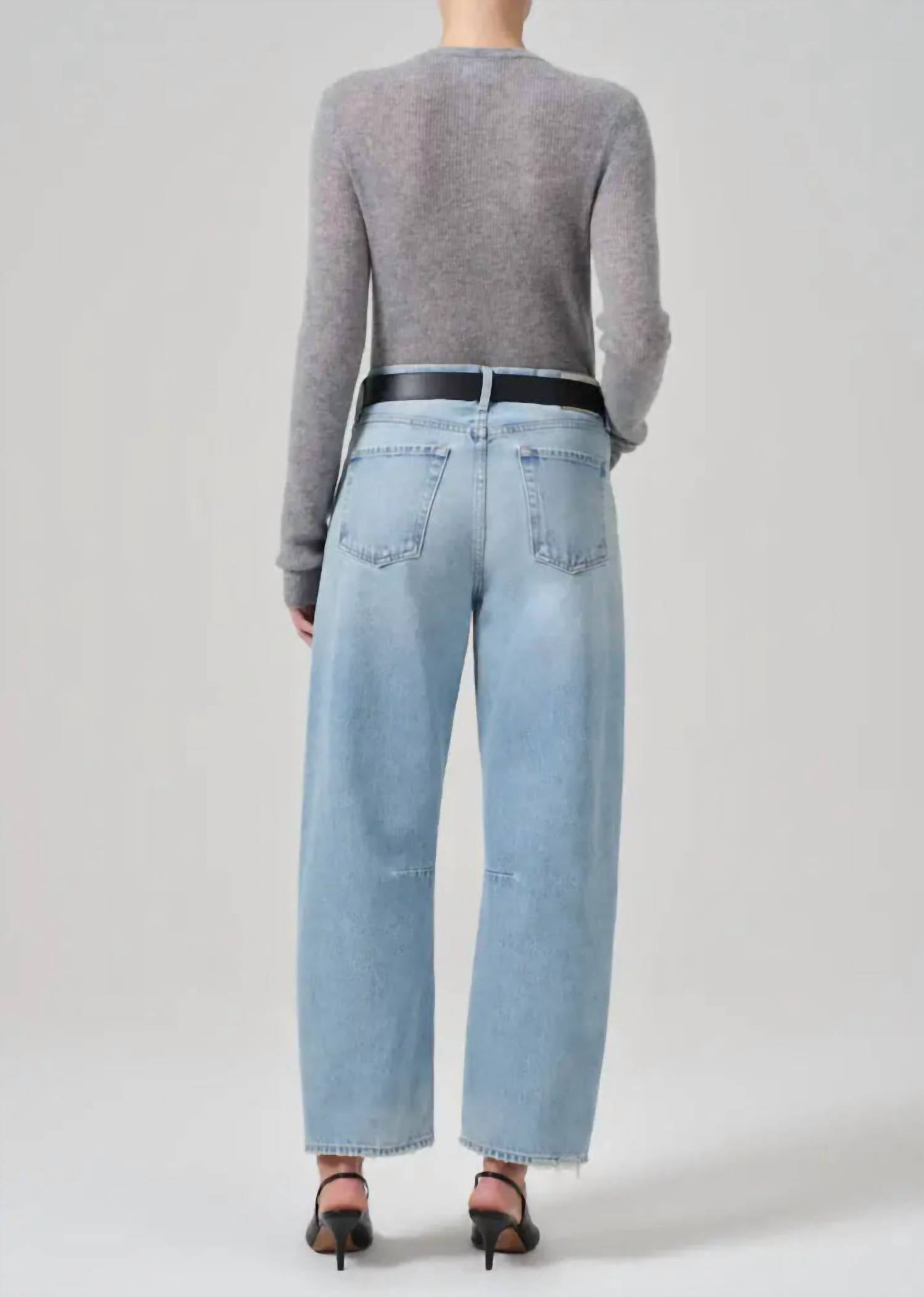 Combine esta calça jeans de perna larga com mules, slides ou suas sandálias de tiras favoritas. Eleve seu estilo com a calça jeans Miro Barrel Fit Wide Leg da Citizens of Humanity, desenvolvida para mulheres que buscam conforto e estilo em um corte relaxado. Esta calça jeans de cintura alta na encantadora cor Gemini Light Indigo incorpora um toque chique e mágico, perfeita para o trabalho ou para um jantar de Ação de Graças. Confeccionada para ser versátil, ela apresenta um padrão sólido com bolsos práticos e fecho de botão. Projetada para facilitar a manutenção, esta calça jeans pode ser lavada na máquina e seca no varal.