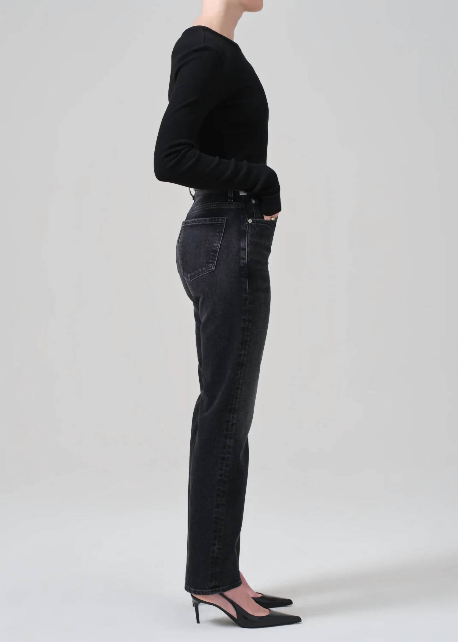 Descubra um estilo descomplicado com a Calça Jeans Zurie de Cintura Alta e Perna Reta da Citizens of Humanity, confeccionada em um tom Stormy sólido. Esta calça jeans de perna reta apresenta cós alto de 29 cm e um caimento relaxado e confortável, com uma abertura de perna de 39 cm. Confeccionada meticulosamente em uma mistura de algodão, ela oferece o apelo atemporal do jeans rígido com o conforto do stretch. O fechamento é feito por botão e zíper e, para cuidados, basta lavar na máquina e secar na secadora. A costura interna mede 79 cm, proporcionando um caimento clássico que combina inspiração vintage com conforto moderno.