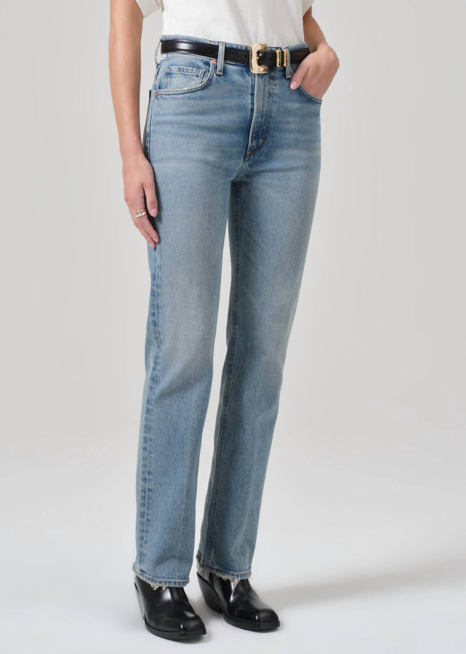 Eleve sua coleção de jeans com a Calça Jeans Zurie Straight Leg da Citizens of Humanity, confeccionada na marcante cor Glendale. Esta calça jeans possui cós alto com 29 cm de altura e 80 cm de costura interna, garantindo um ajuste perfeito e um visual elegante. Confeccionada em uma confortável mistura de 98% algodão e 2% poliuretano, possui fecho de zíper e bolsos lisos. Desfrute de um cuidado sem esforço com lavagem à máquina com água fria, do avesso, e secagem em temperatura baixa para maior praticidade. Modelo: 1,78 m, veste tamanho 27.