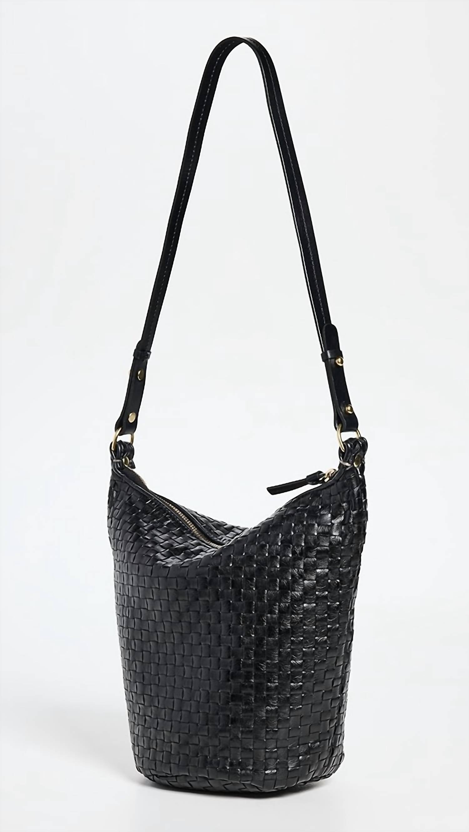 Introducing the Petite Jeanne Bag by Clare V., a chic shoulder bag in classic black that's perfect for everyday use. This stunning piece is crafted from handwoven calfskin leather and features gold-tone hardware for a touch of elegance. With a versatile removable shoulder strap, it's compatible with other straps for styling flexibility, and is equipped with a zip closure for security. The bag's dimensions are 9.75 inches in height, 11.75 inches in length, and 5.5 inches in depth, with a strap drop of 13.5 inches.