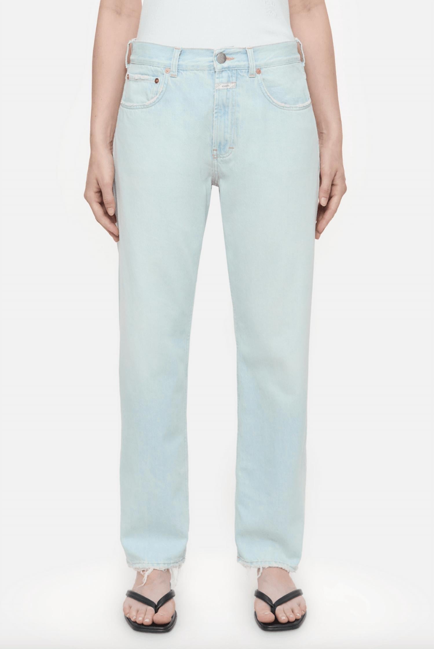 Introducing the Jonta Straight Leg Jean by CLOSED, a minimalist piece crafted from Gentle Comfort Stretch denim in an extreme light wash. With a mid-rise waist and straight leg, these jeans offer a relaxed fit with five convenient pockets. Composition: 79% Cotton, 20% Recycled Cotton, 1% Elastane. Closure: Zip closure. Care: Machine wash and tumble dry, ideal for effortless style at Thanksgiving dinner parties.