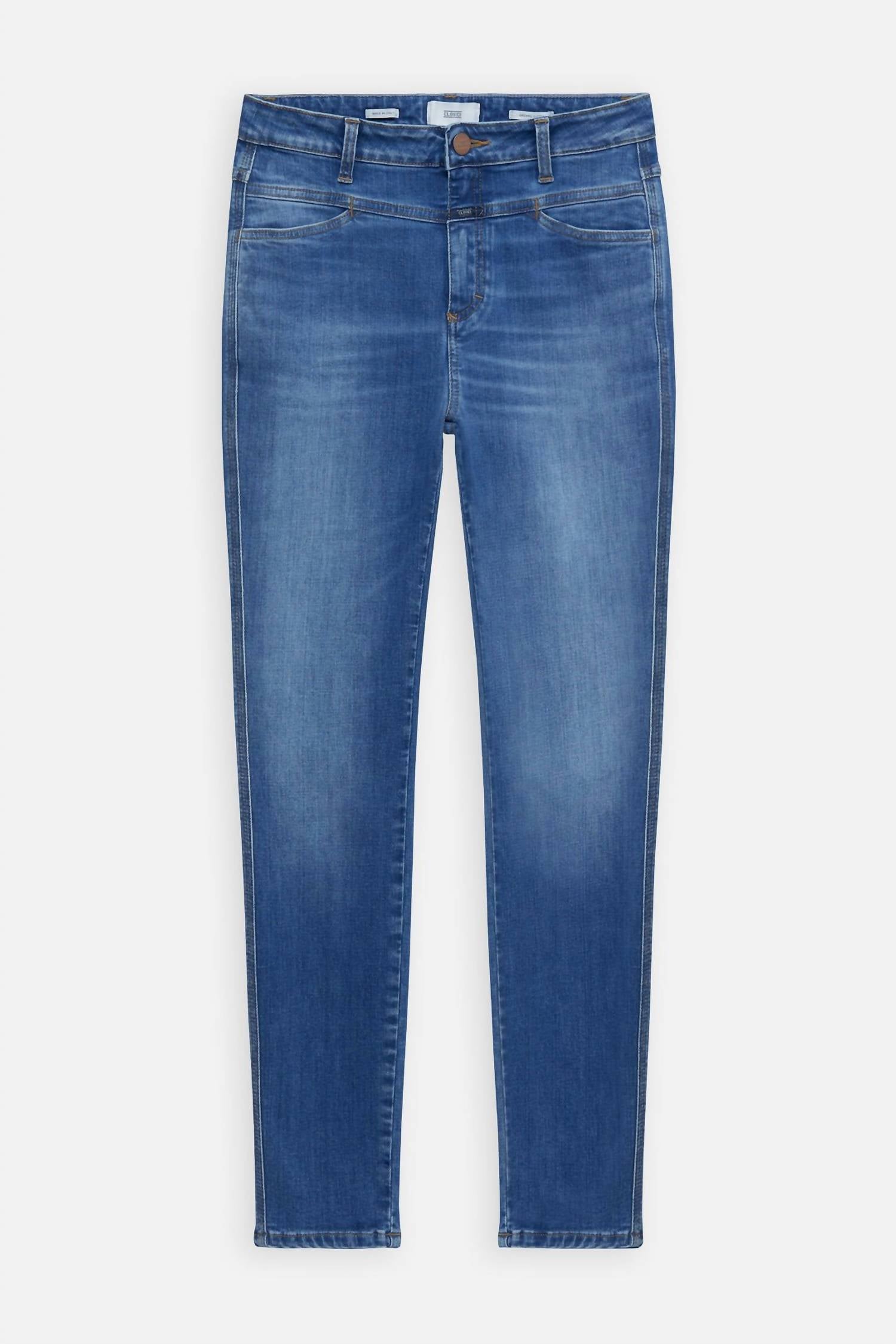 Elevate your wardrobe with the Women's Skinny Pusher Jeans by CLOSED, a chic addition in Mid Blue Two. These skinny jeans boast a classic fit with a straight leg, featuring a solid pattern and medium denim wash perfect for spring vacations. Made with a convenient zip closure and functional pockets, they embody a streetwear trend ideal for any occasion. Care instructions not provided; handle according to standard denim care.