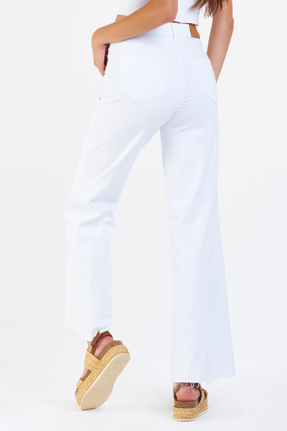 Combine esta calça jeans de perna larga com mules, slides ou suas sandálias de tiras favoritas. Confeccionada para um visual chique e despojado, em um branco sólido e elegante. A calça jeans de perna larga destaca o caimento relaxado e a cintura alta, com 29 cm de altura frontal e 78 cm de comprimento. Confeccionada em uma mistura aconchegante de 90% algodão, 8% poliéster e 2% elastano. Oferece elasticidade confortável com um detalhe exclusivo na bainha recortada. Apresenta braguilha com zíper e fecho de botão e um estilo clássico de cinco bolsos. Fácil de cuidar, com instruções de lavagem à máquina com água fria e secagem em temperatura baixa.