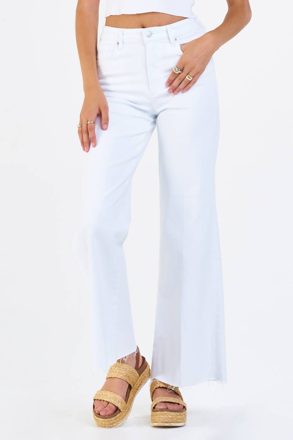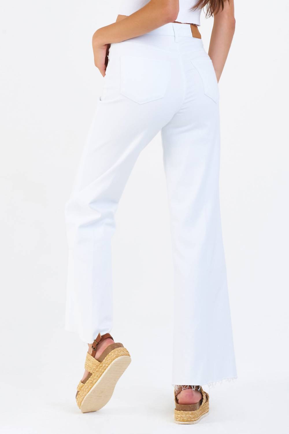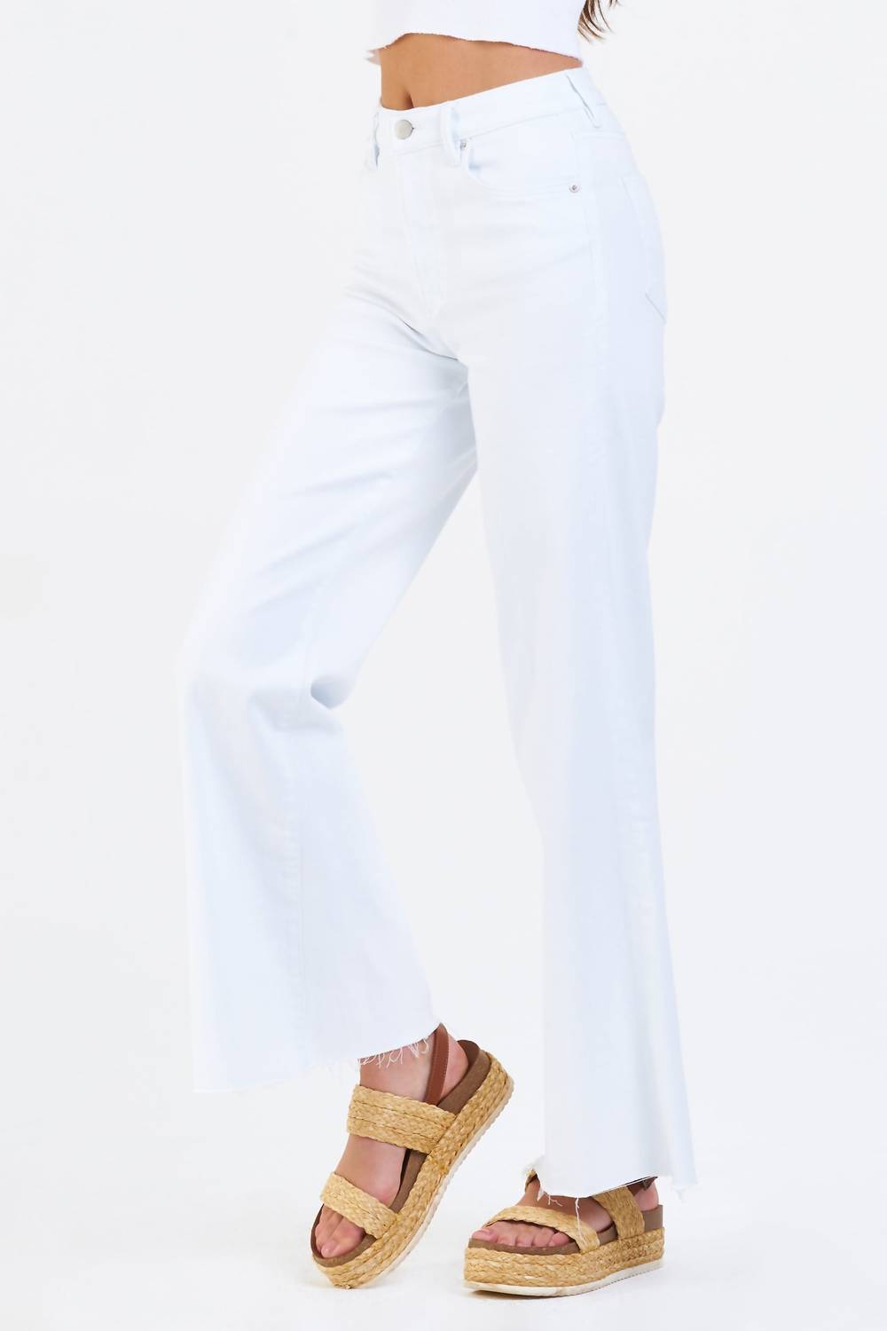 Esta calça jeans Fiona Wide Leg oferece um caimento relaxado de cintura média com 78 cm de costura interna, estilo perna larga e bainha cortada. Confeccionada em uma mistura de 90% algodão, 8% poliéster e 2% elastano com elastano, possui braguilha com zíper e fecho de botão para facilitar o calce.