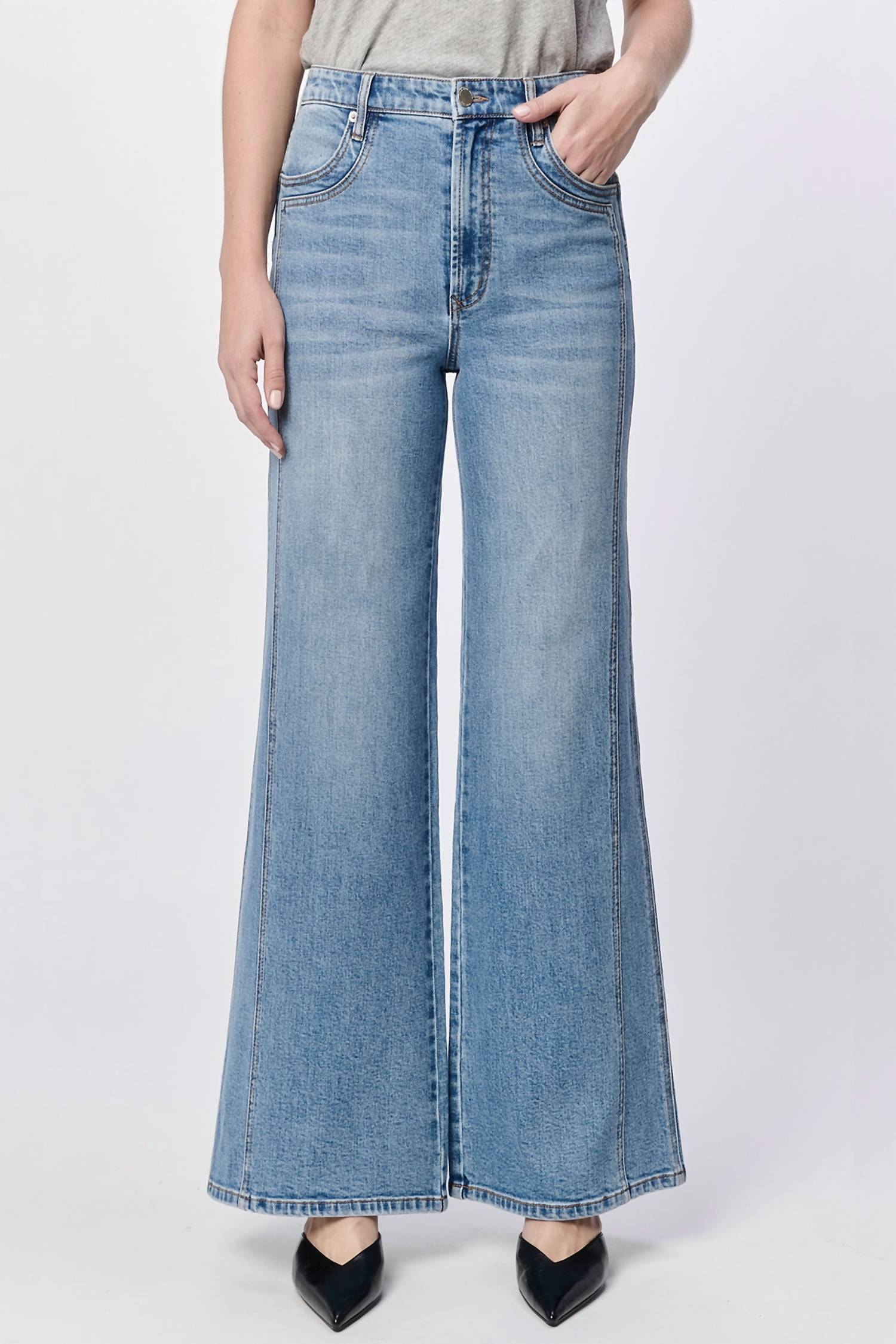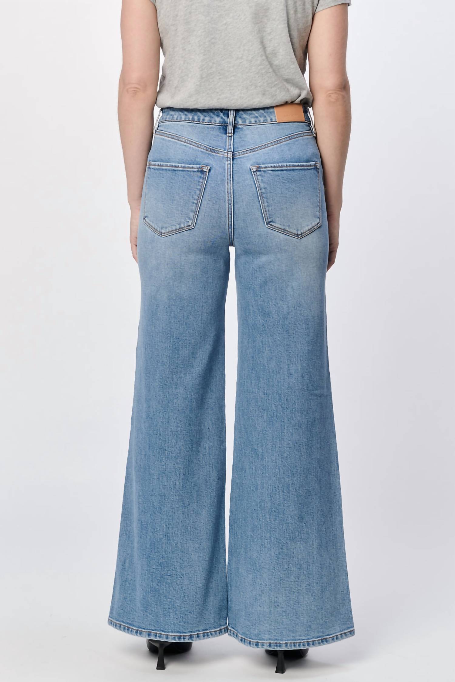 Elevate your style with the Fiona Wide Leg Jeans by DEAR JOHN DENIM, perfect for a sophisticated, relaxed look in a medium wash creekside hue. These high-rise jeans feature a wide-leg style with a comfortable relaxed fit and are designed with pockets for practical charm. Crafted from premium denim, they offer a versatile staple ideal for spring and effortlessly embrace the 90s fashion trend. Closure: Zip closure. Care: Machine wash and tumble dry. Inseam: 31 inches, Rise: 11.5 inches.