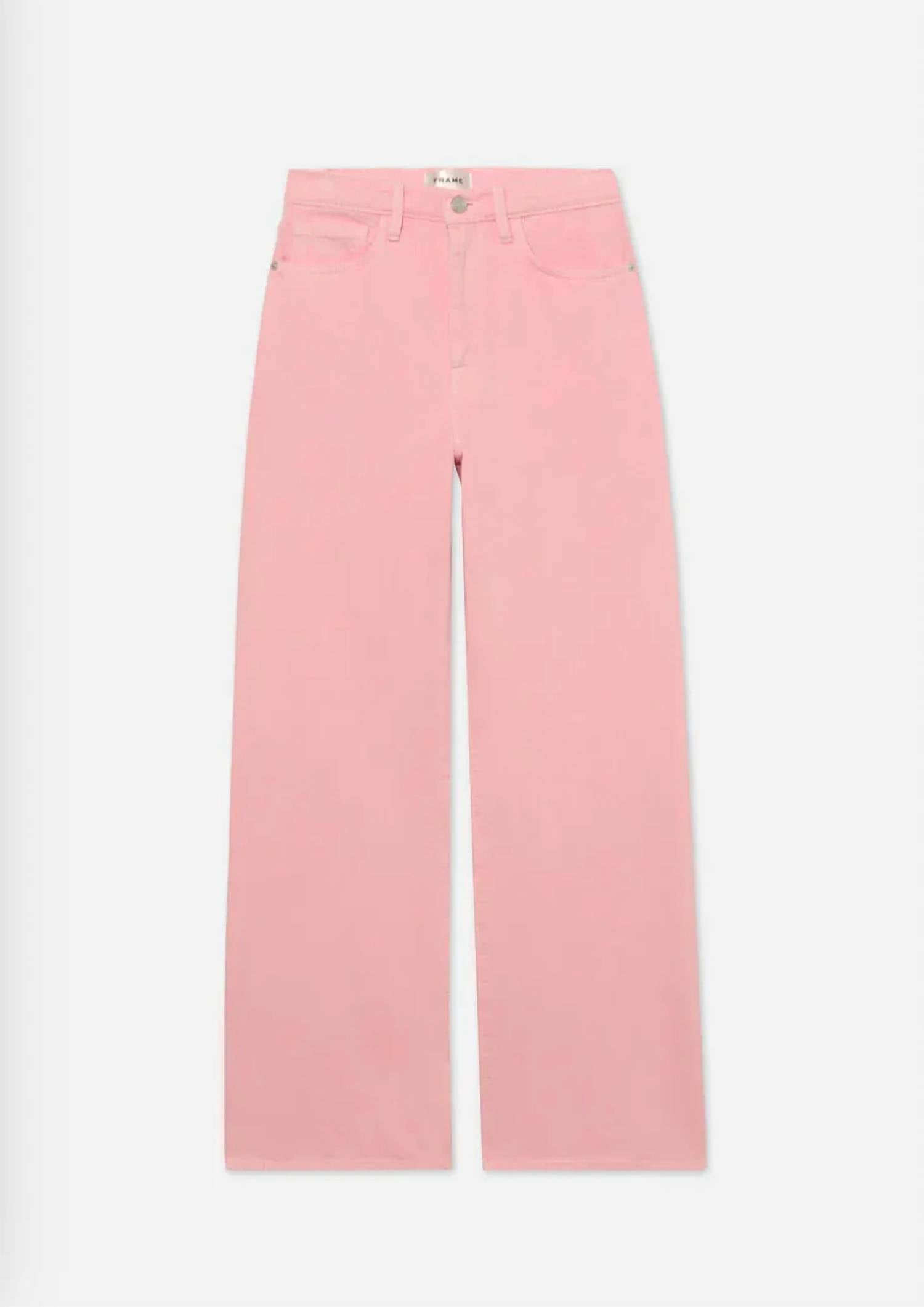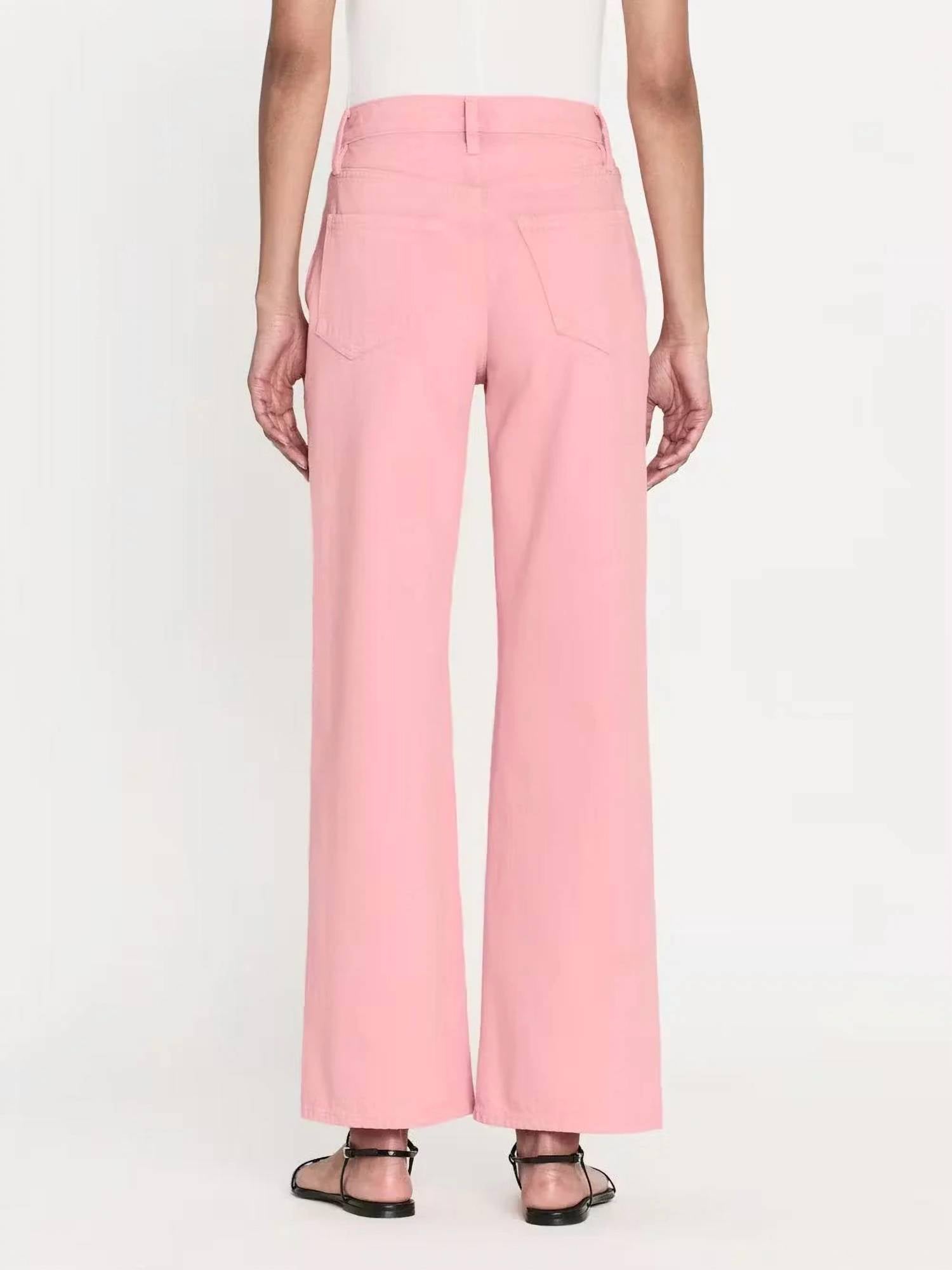 Fit to perfection, we love these high-waist jeans and you will too. Introducing the FRAME Le Jane Wide Leg Crop Jean in Dusty Pink, perfect for adding a touch of vintage style to your wardrobe. Crafted from 100% premium cotton denim, these jeans offer a flattering ultra-high-rise fit through the hips and a wide leg that ends with an ankle-grazing 28-inch inseam. With a solid pattern and zip closure, they are both stylish and practical, featuring pockets for convenience. Care is simple with machine wash cold and tumble dry instructions, ensuring your evening event look is always ready.