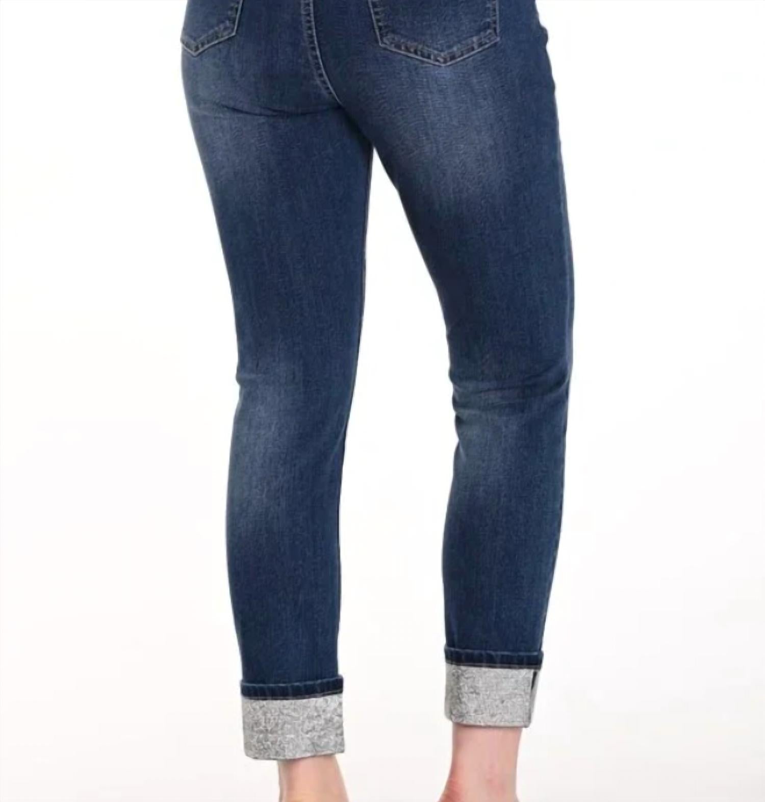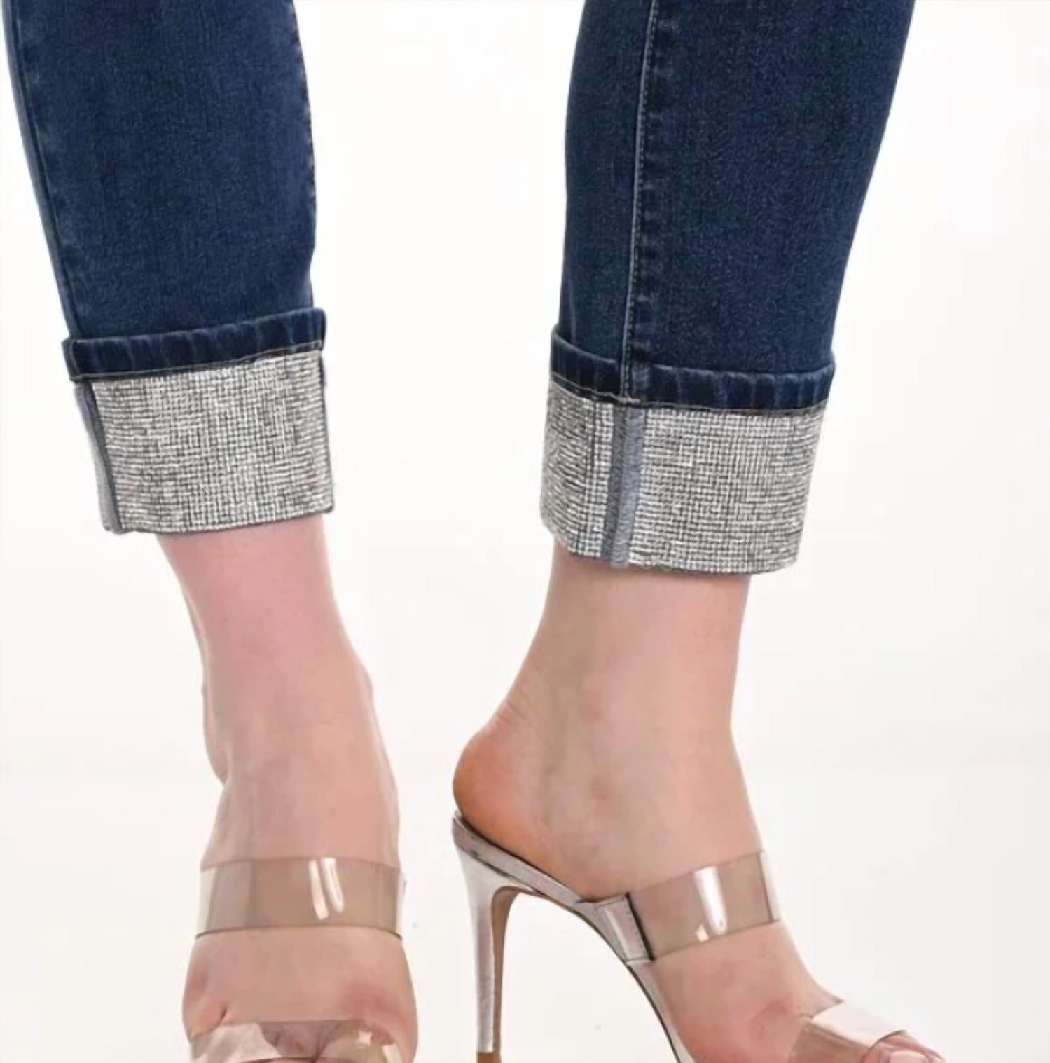 O jeans curto perfeito para as estações de transição. Eleve sua coleção de jeans com a Calça Jeans com Punho Largo e Strass da Frank Lyman, uma peça de destaque da coleção Primavera 2025. Esta calça jeans deslumbrante, com comprimento até o tornozelo e corte cropped, apresenta uma bainha ousada com strass, perfeita tanto para o dia quanto para a noite. Confeccionada em uma luxuosa mistura de algodão (73% algodão, 23% poliéster, 3% rayon, 1% elastano) e fabricada no Canadá, esta calça promete um caimento regular com perna afunilada para uma silhueta elegante. Aproveite a funcionalidade dos bolsos e o fecho de zíper seguro, tudo em um tom azul sólido.