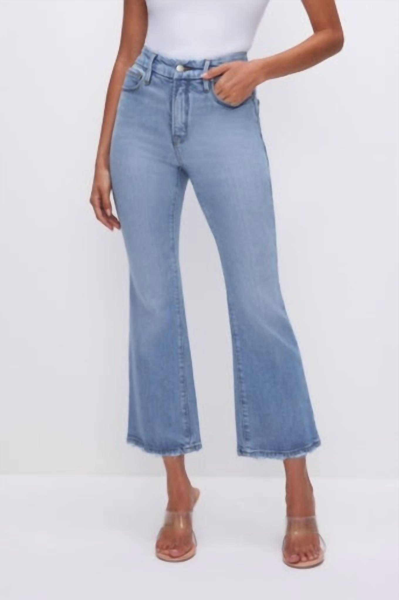 Fique na moda com estas calças boot cut estilosas e com caimento perfeito. A combinação perfeita de conforto e estilo, você vai querer usá-las a estação toda! Apresentamos a Calça Jeans Crop Flare Good Legs da GOOD AMERICAN, uma adição elegante ao seu guarda-roupa em um tom índigo sólido. Esta calça jeans possui uma elegante perna larga e um prático fecho de zíper, com bolsos para maior funcionalidade. Confeccionada em uma mistura de viscose composta por 48% Lyocell, 47% Viscose, 4% Poliéster e 1% Elastano, ela proporciona conforto e flexibilidade. As instruções de cuidado recomendam lavar na máquina com água fria para facilitar a manutenção.