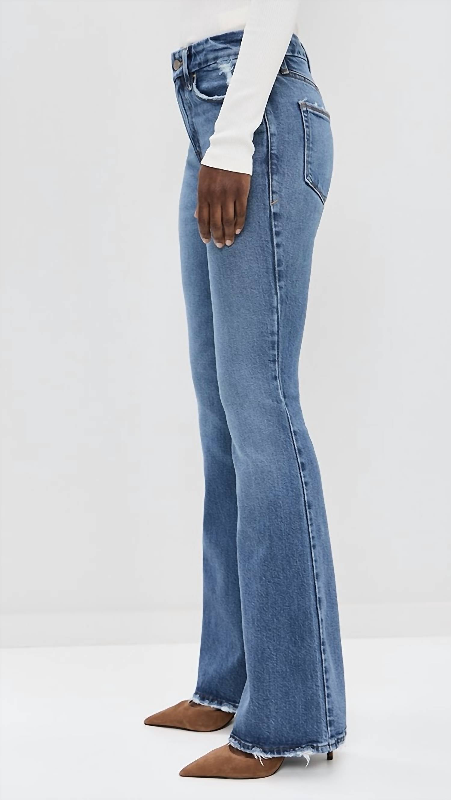 Apresentamos a Calça Jeans Flare com Zíper em V Profundo Good Legs da GOOD AMERICAN, uma escolha estilosa para qualquer guarda-roupa em um tom índigo intenso. Esta calça jeans feminina apresenta cintura alta e estampa texturizada, oferecendo um toque moderno com bolsos práticos. O design reto garante um caimento atemporal. Fechamento: Botão. Cuidados: Lavar à máquina.