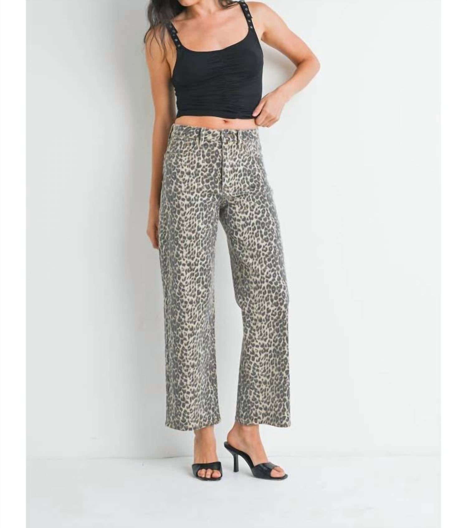 Este jeans clássico de perna reta tem um ajuste perfeito e combina com quase tudo. Esta calça jeans feminina de cintura alta tem 73 cm de comprimento interno e 23 cm de abertura, com um estampado de oncinha marcante. Confeccionada em uma confortável mistura de algodão com 94,2% algodão, 4,6% poliéster e 1,2% elastano, oferece flexibilidade e durabilidade. Aproveite a praticidade do fecho de botão e dos bolsos, com instruções fáceis de cuidar: lavar na máquina e secar na horizontal.