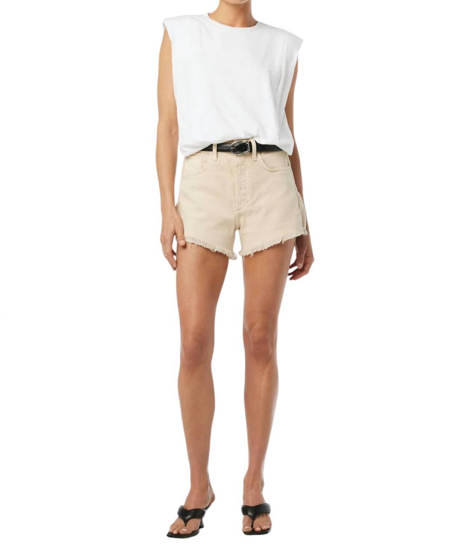 Shorts jeans nunca são demais, e estes serão seus novos favoritos. Estes shorts de cintura alta têm um caimento relaxado e apresentam um tom natural com lixamento manual local e bainhas desfiadas para um visual desgastado. Feitos de 99% algodão e 1% elastano, são laváveis à máquina e têm um tamanho fiel ao seu. O cós mede 29 cm, o cós traseiro tem 40 cm, a abertura das pernas tem 59 cm e a costura interna tem 8 cm. A modelo veste tamanho 26.