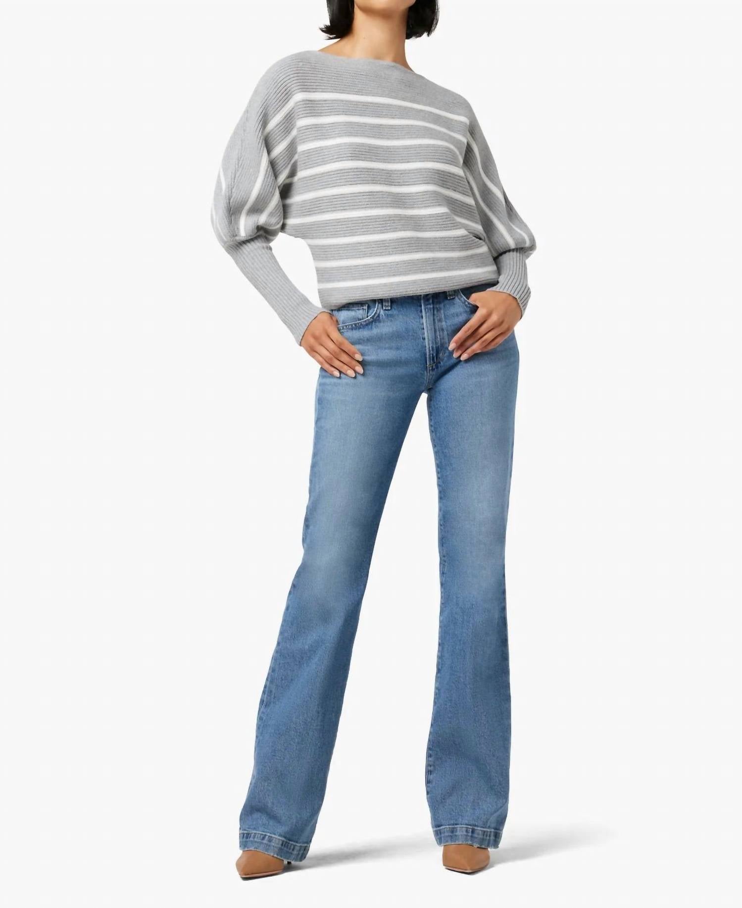 O suéter perfeito para usar em qualquer ocasião, habilmente confeccionado para proporcionar a combinação perfeita de aconchego e estilo. Seu design clássico e tecido macio o tornam um item essencial no seu guarda-roupa. Eleve seu guarda-roupa sazonal com o suéter Karina de gola redonda e manga comprida da Joe's Jeans, uma escolha chique para viagens e ocasiões de outono. Confeccionado em uma mistura confortável de 52% viscose, 28% poliéster e 20% poliamida, este suéter apresenta um caimento elegante com punhos ajustados, mangas ligeiramente mais amplas e bainha levemente cortada, acentuada por listras estilosas. Apresentado em uma paleta versátil de cinza mesclado e branco, oferece uma estética elegante, perfeita para reuniões de Ação de Graças. Fechamento: Puxe. Cuidados: Lavar à máquina e secar na horizontal. A modelo veste tamanho pequeno.
