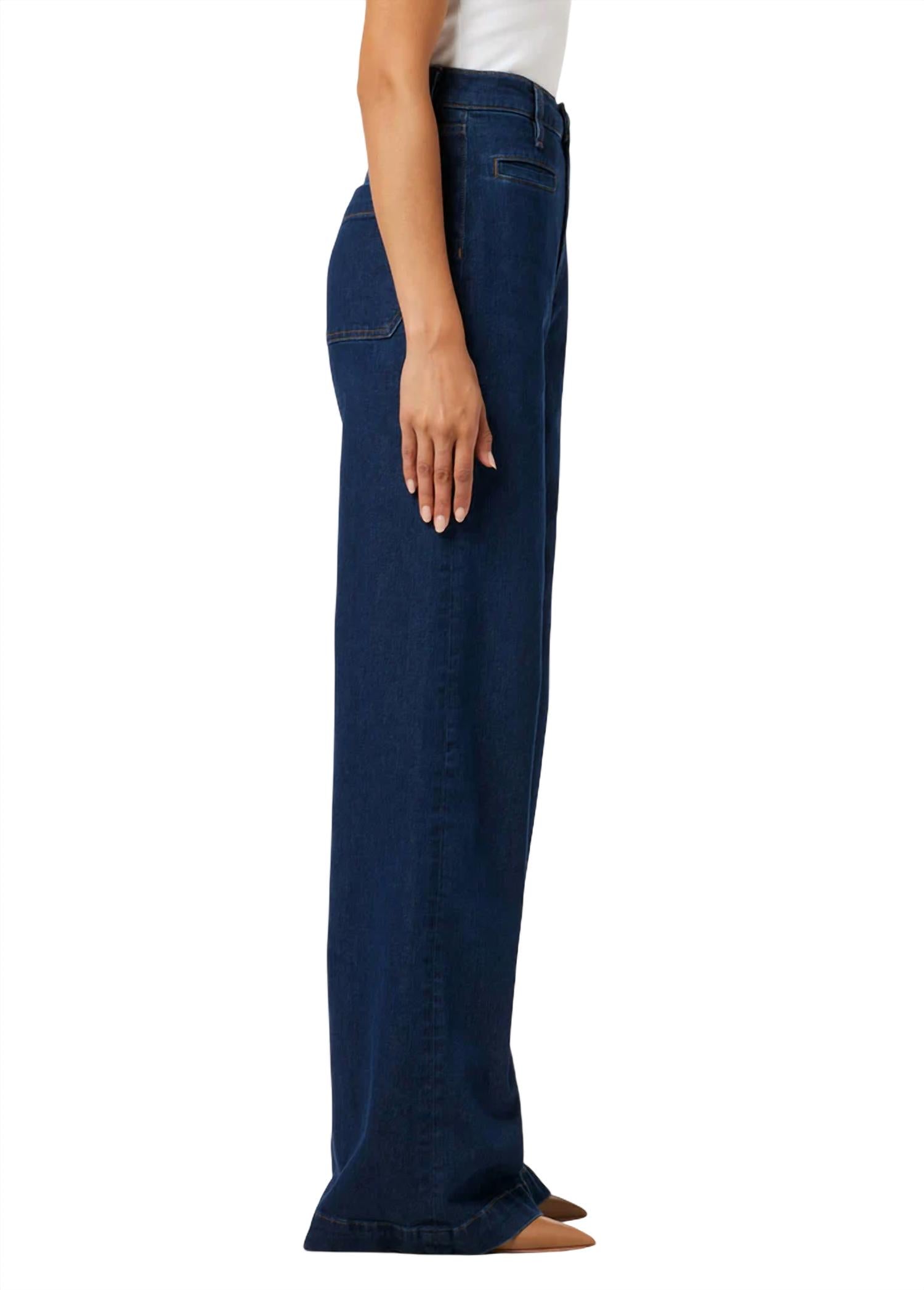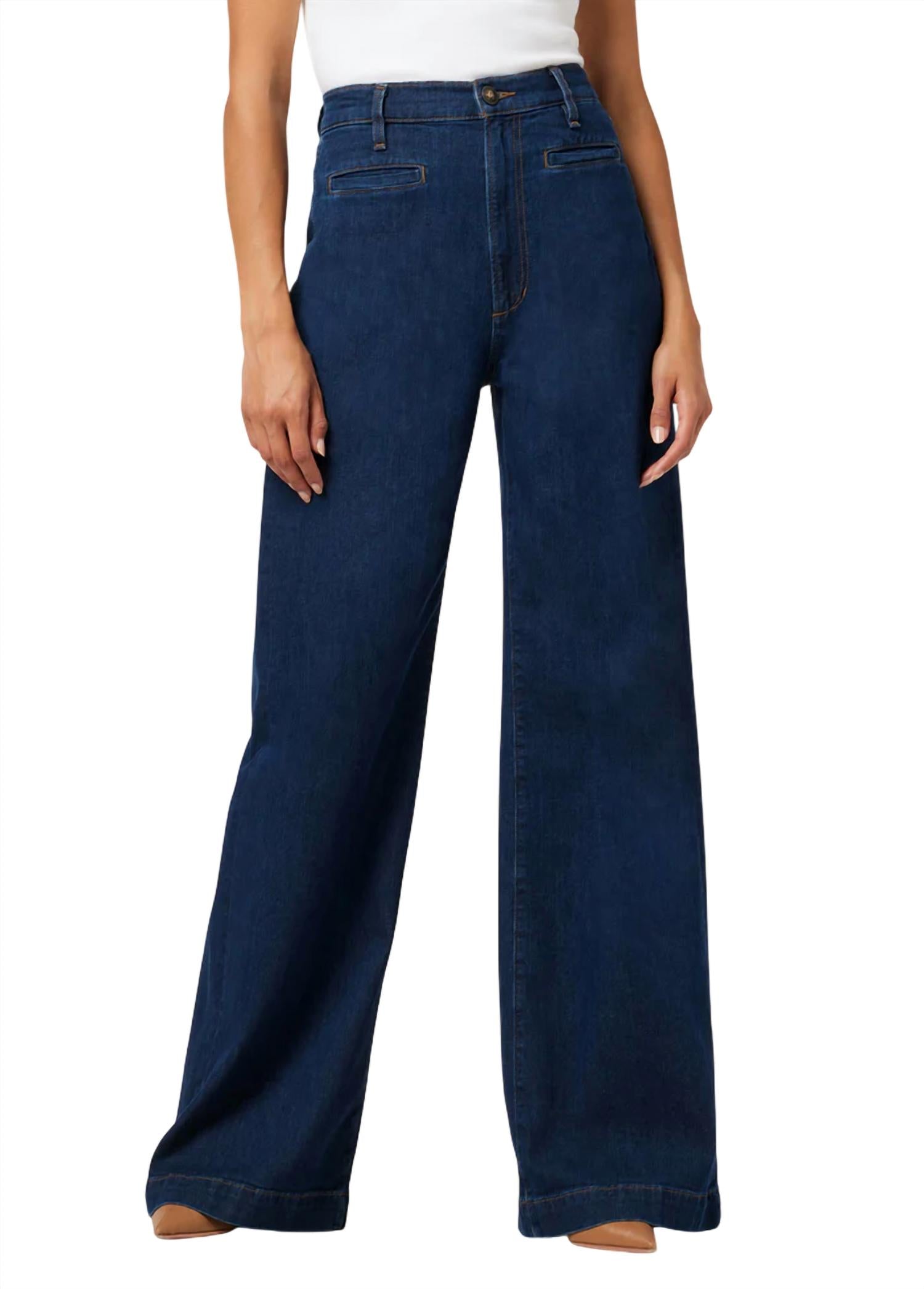 O jeans Kate de cintura alta e perna larga na cor Impressive é um tom azul índigo verdadeiro de denim que vem com bolsos frontais embutidos inspirados nos anos 70. Cintura de 30 cm. Costura interna de 86 cm. 92% algodão, 6% poliéster, 2% elastano.