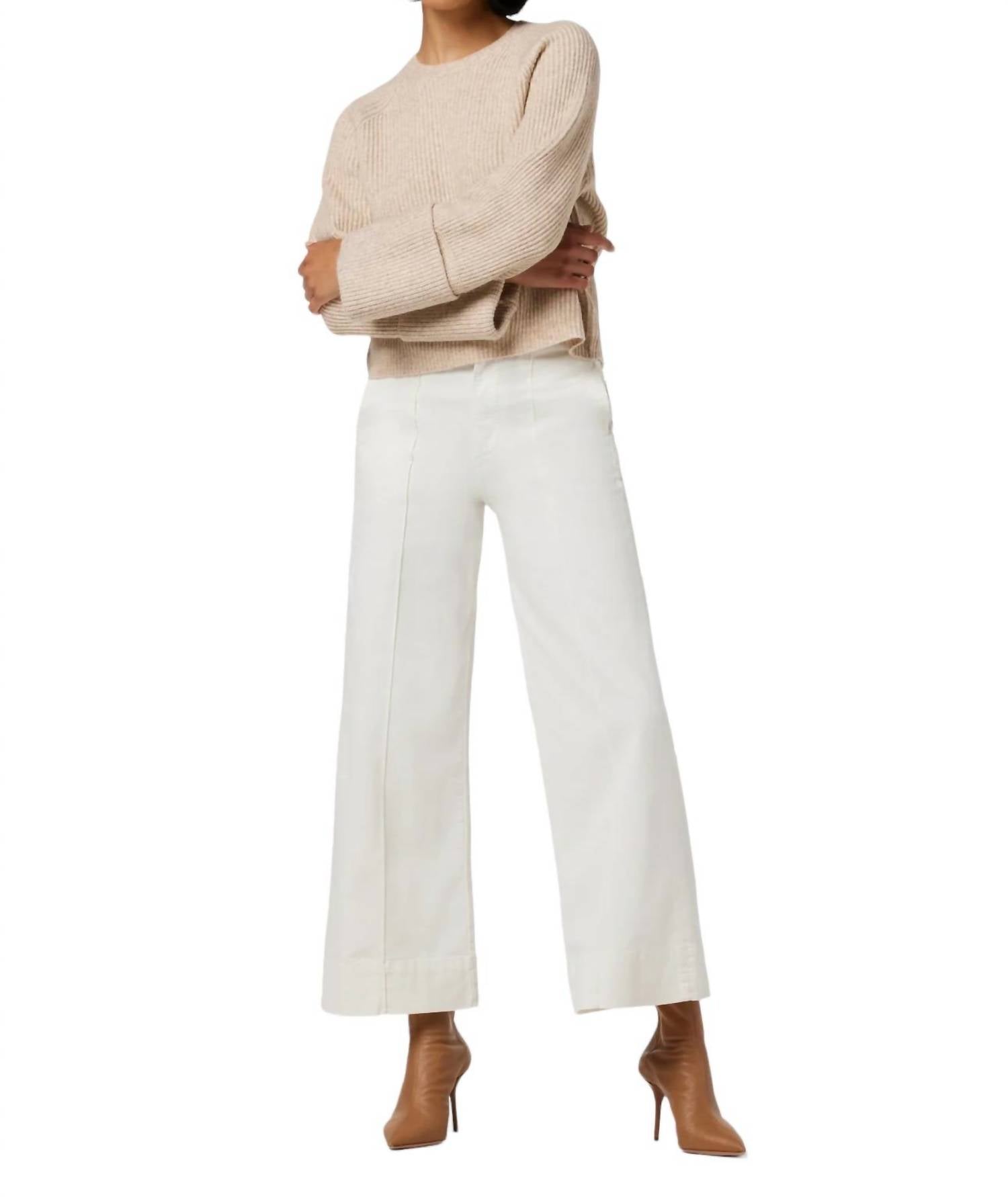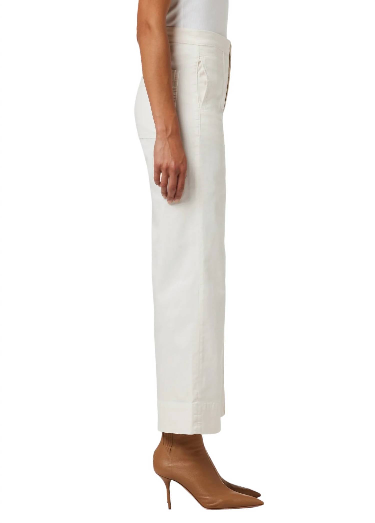 Esta calça comprida até o tornozelo apresenta bainhas largas, frente limpa e vincos frontais para um visual elegante e impecável. Confeccionada em 78% algodão, 18% modal, 3% elastomultiéster e 1% elastano, oferece conforto e estilo. As medidas incluem 29 cm de altura, 68 cm de costura interna e 57 cm de abertura nas pernas. Observe que esta calça tem modelagem pequena. A modelo veste tamanho 26. Para cuidados, lave na máquina em água fria.