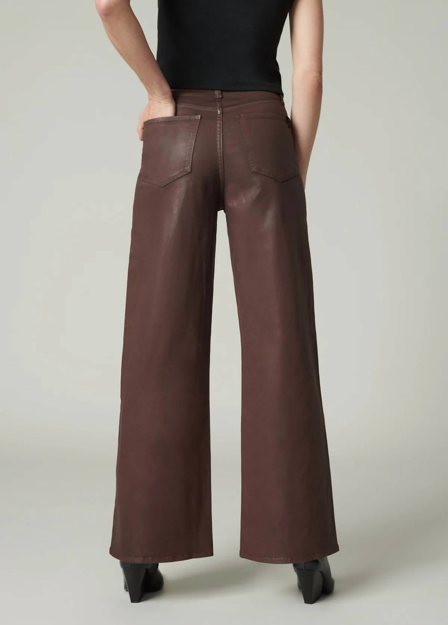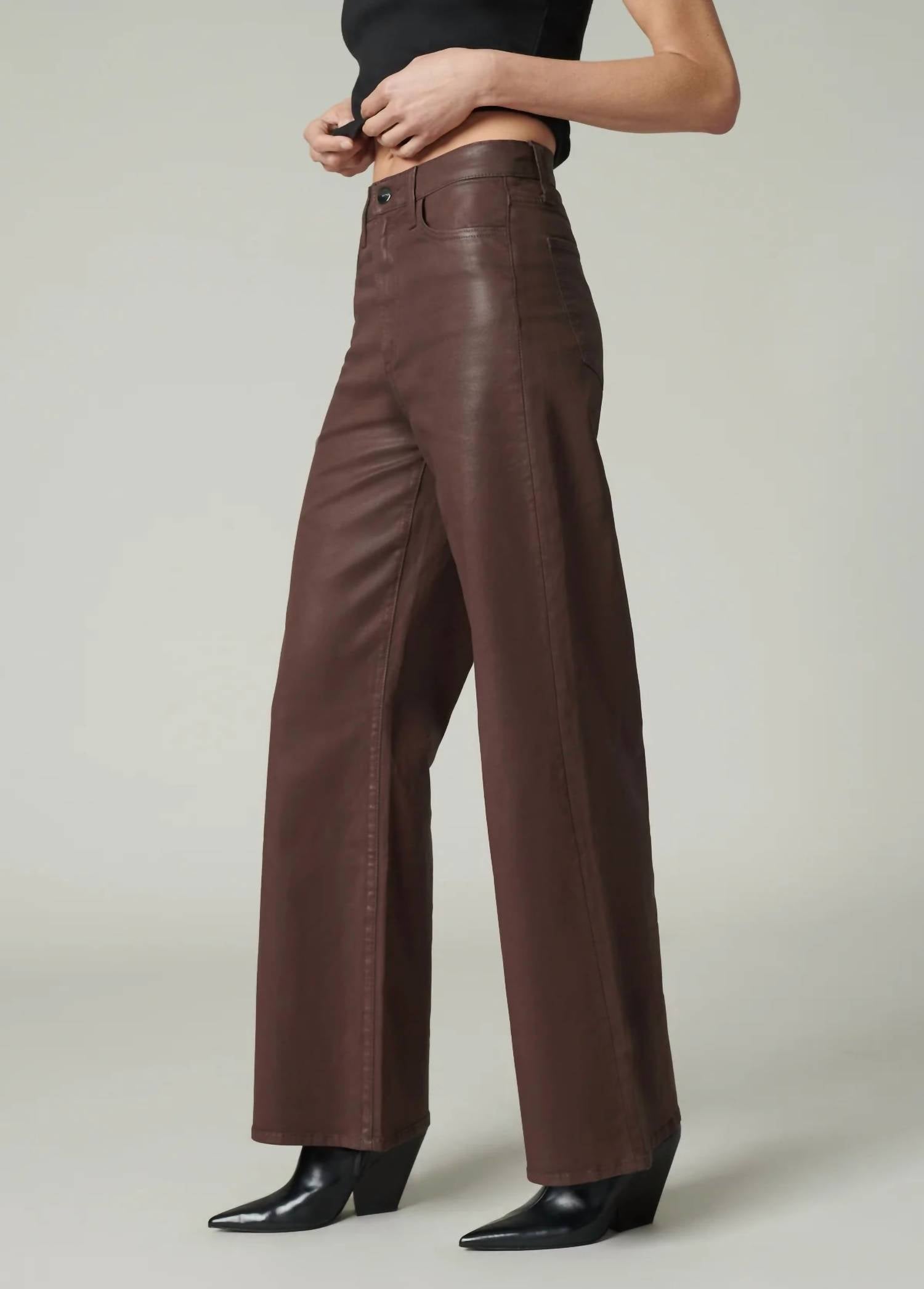 Apresentamos a Calça Jeans Mia Wide Leg Coated na cor Espresso da Joe's Jeans, perfeitamente proporcionada para baixinhas de até 1,62 m. Esta calça jeans apresenta cós alto de 29 cm e perna larga com comprimento total, costura interna de 76 cm e abertura de 58 cm. Confeccionada em cetim elástico que combina 79% algodão, 18% modal e 3% elastano, oferece um caimento relaxado para conforto o dia todo. Com cinco bolsos e uma lavagem Espresso elegante e brilhante, esta calça jeans fecha com botão, tornando-a uma opção sofisticada para qualquer evento noturno.