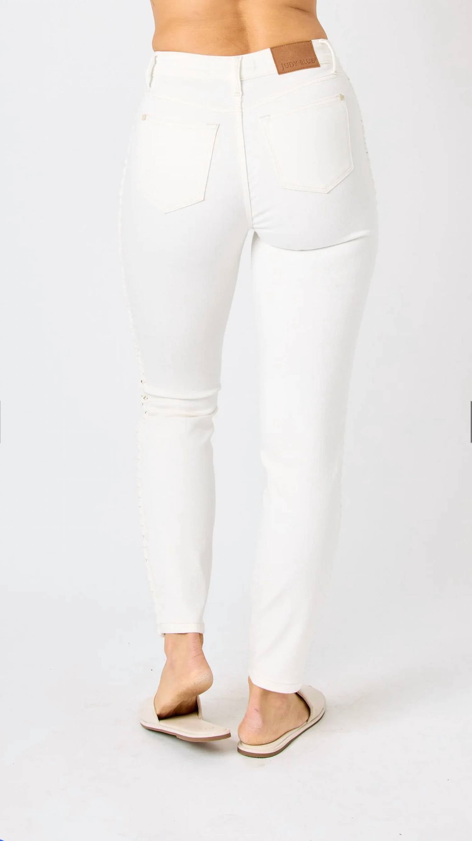Uma calça jeans skinny que é estilosa e confortável. Adoramos esse modelo porque combina com botas, ou sem!