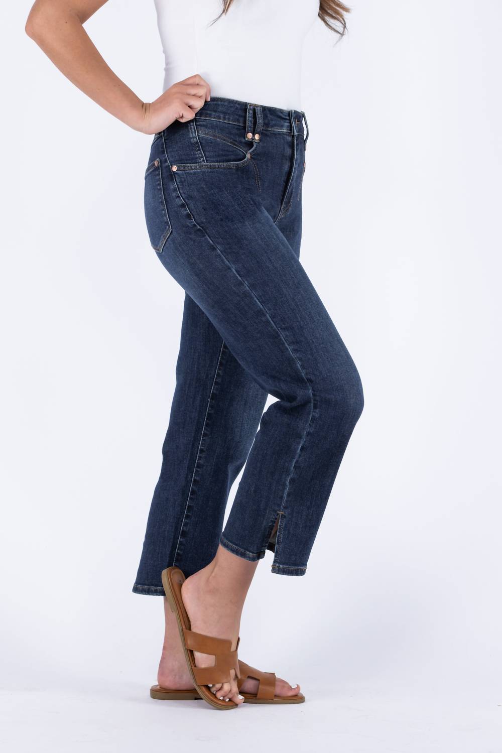 Judy Blue - Calça jeans cropped de cintura alta e perna reta Center Stage
