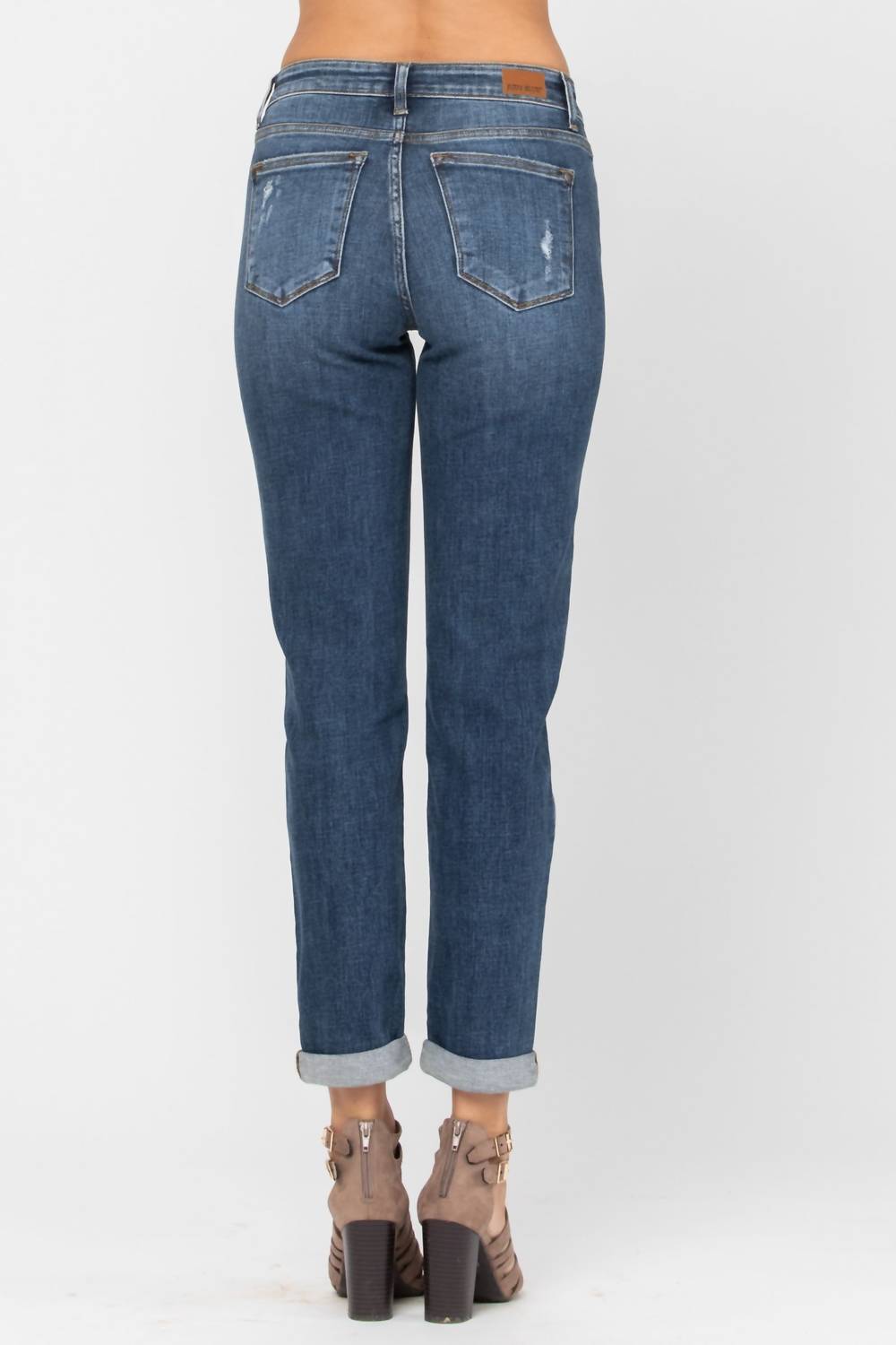Esses jeans indispensáveis ​​têm um caimento perfeito. Conheça a Calça Jeans Destroyed Cuffed Mid Rise Slim Fit da Judy Blue, criada para quem ama um caimento estiloso e confortável. Esta calça jeans azul apresenta um padrão sólido e um corte slim relaxado com pernas retas, além de cós médio com 24 cm de altura frontal. Sua composição de material resistente é 93% algodão, 6% poliéster e 1% elastano, com uma costura interna de 74 cm sem punho e 69 cm com punho. Fechamento: Botão. Para melhor conservação, vire do avesso e lave em água fria, optando por secar ao ar livre ou na secadora em temperatura baixa.