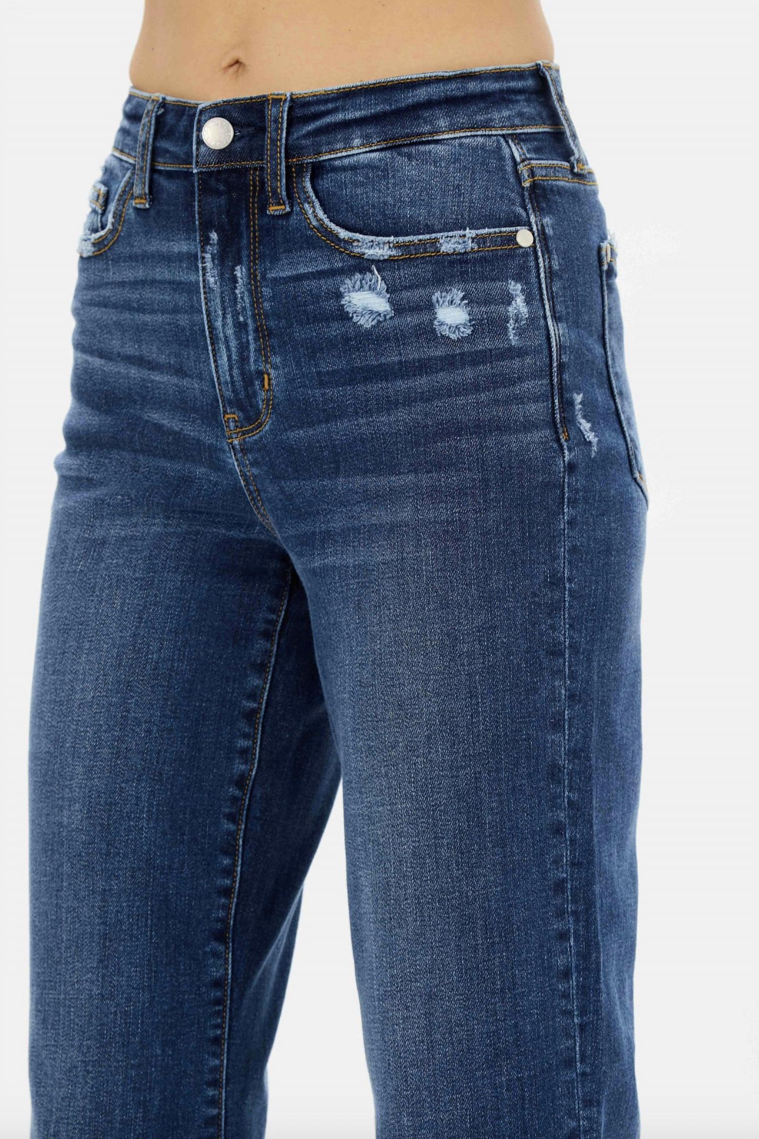 Judy Blue - Destroyed Pocket Wide Leg Jeans