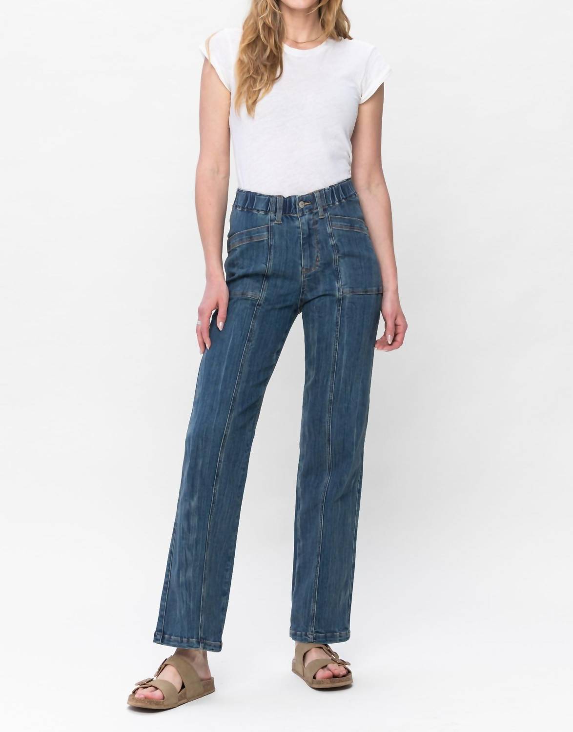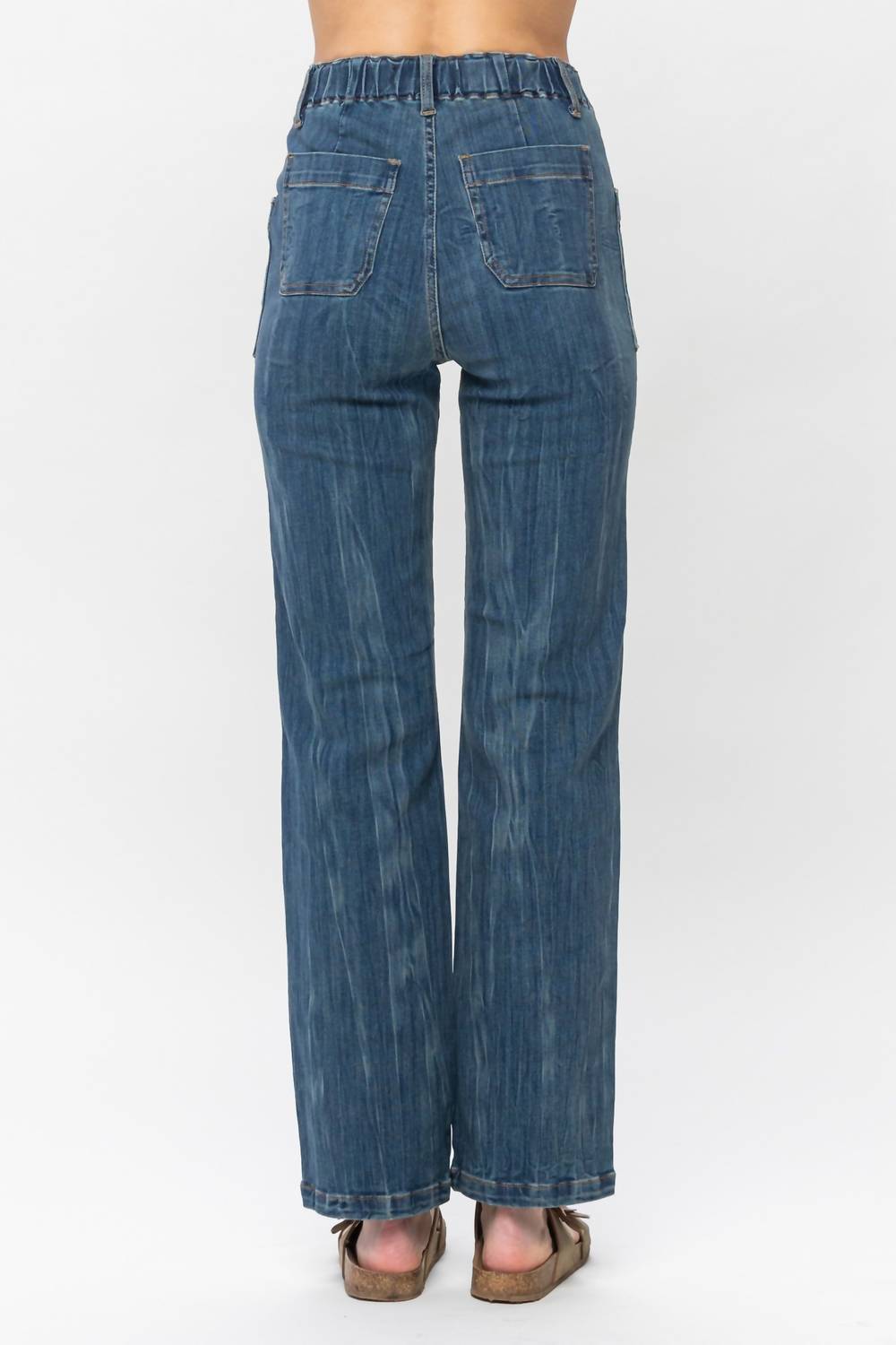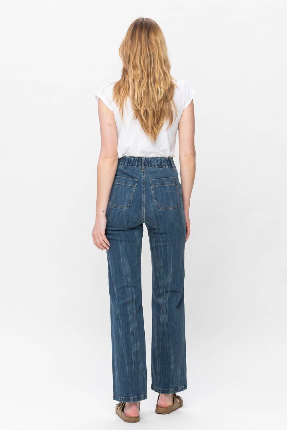 Abrace o conforto e o estilo com a Calça Jeans Judy Blue Hi Rise Elastic Waist Vintage Straight Leg, com lavagem Vintage Medium. Esta calça jeans possui cintura elástica alta que se estica de 2,5 a 7,5 cm, garantindo um ajuste confortável e elegante, perfeito para reduzir dois tamanhos devido à sua elasticidade. Confeccionada em uma mistura de algodão com 52,2% algodão, 21,5% poliéster e 2,9% lycra, esta calça jeans apresenta um corte reto e relaxado, com bolsos frontais profundos e inclinados para maior praticidade. Com um fecho de botão clássico e uma costura interna de 81 cm, esta calça jeans torna o uso diário elegante sem esforço.