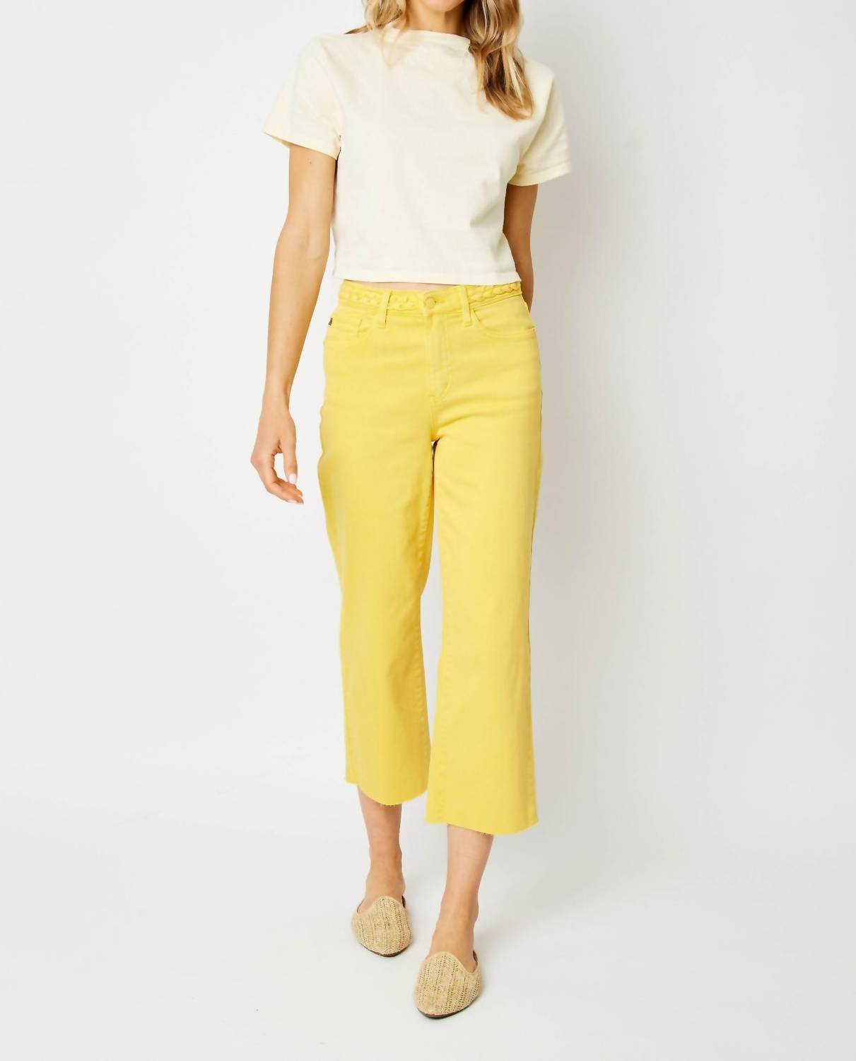 Entre na primavera com a Calça Jeans Crop Judy Blue de Cintura Alta, Cós Trançado e Perna Larga, uma mistura perfeita de estilo e conforto. Confeccionada em uma mistura de algodão com 93% algodão, 6% poliéster e 1% elastano, esta calça oferece um caimento relaxado com pernas largas que se alargam do meio da coxa até a abertura da perna. Com cintura alta, ela conta com fecho de botão e bolsos práticos. Cuidados: Vire do avesso e lave em água fria, evitando misturar lavagens claras com escuras. Em seguida, seque ao ar livre ou na secadora em temperatura baixa. Os tamanhos variam de 0 (24) a 15 (32), com altura frontal de 27 cm e entrepernas de 62 cm para tamanhos padrão e altura frontal de 30 cm para tamanhos 44W-46W.