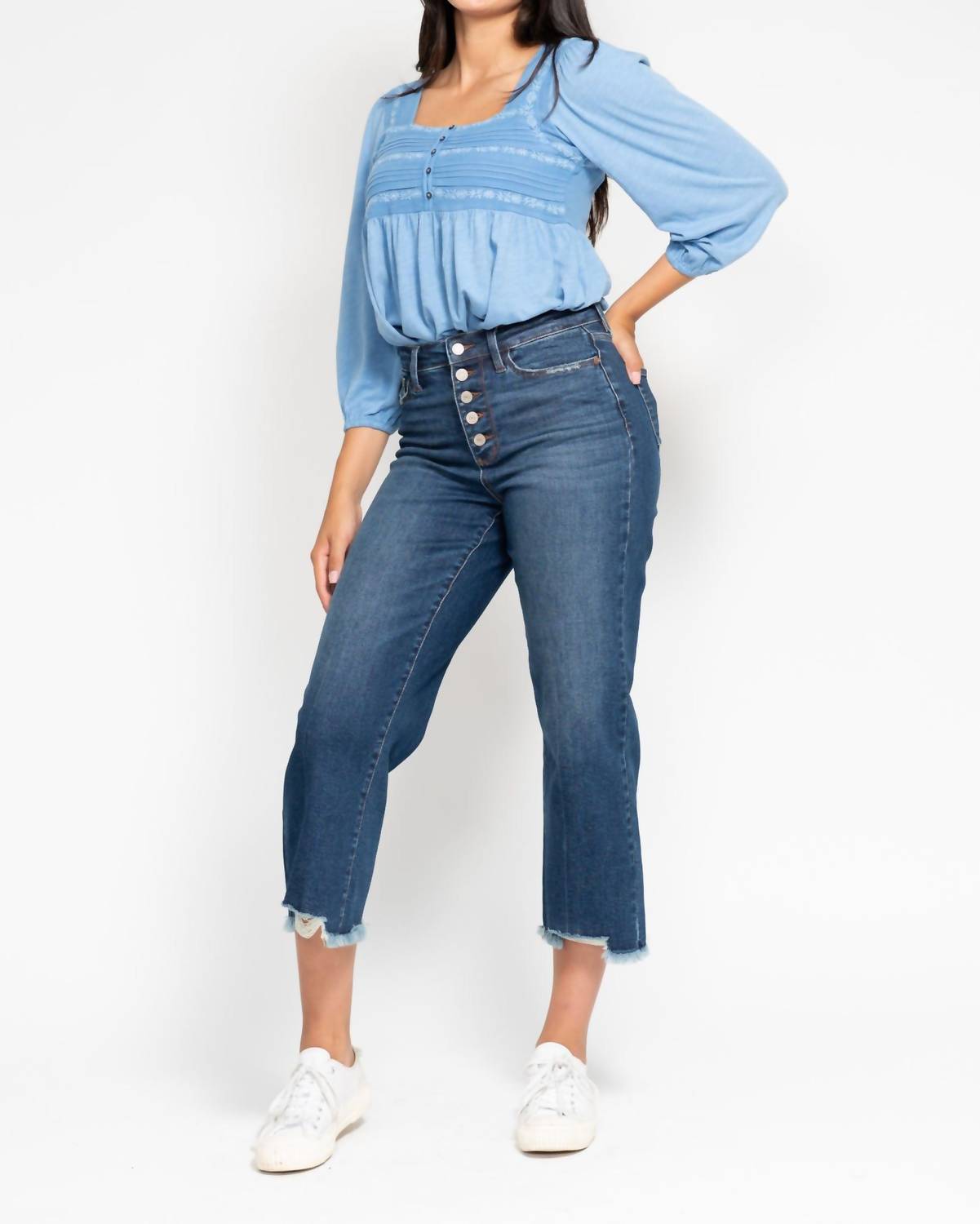 O relatório de tendências diz que o boot cut está na moda e é exatamente por isso que amamos esse estilo. Eles têm um caimento perfeito, favorecem qualquer tipo de corpo e são confortáveis. Serão a sua escolha durante toda a temporada. Eleve sua coleção de jeans com a Calça Jeans Judy Blue de Cintura Alta com Botões e Braguilha, feita para a mulher moderna. Esta calça jeans de lavagem média apresenta um caimento relaxado e um corte bootcut moderno, realçado por um cós alto de 28 cm. Composta por 94% algodão, 5% poliéster e 1% elastano, oferece conforto e durabilidade com um elegante fecho de botão. O cuidado é fácil: basta lavar na máquina e secar na secadora, tornando esta calça jeans perfeita para o estilo streetwear nas ensolaradas estações do ano.