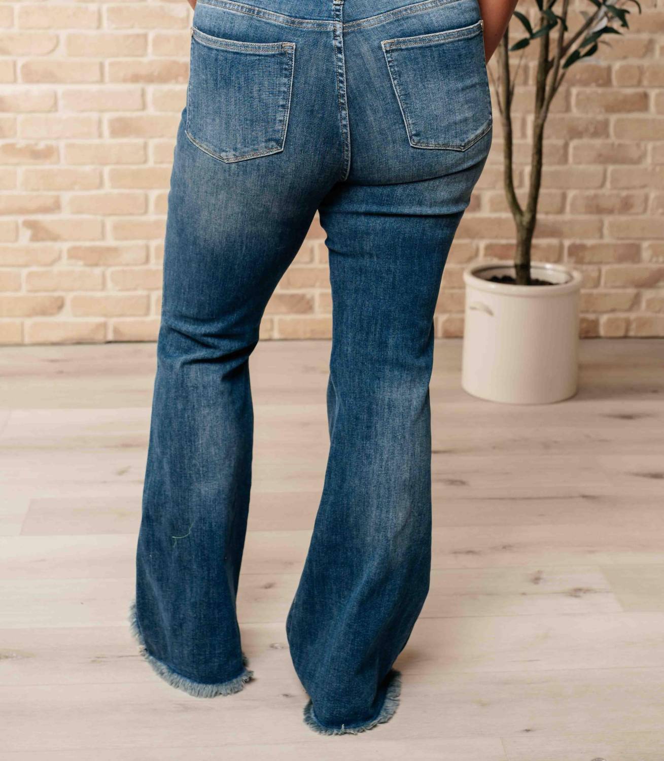 Aprimore seu estilo jeans com a Calça Jeans Flare com Controle de Cintura Alta e Bainha Desfiada da Judy Blue, desenvolvida para um caimento elegante e uma silhueta elegante. Esta calça jeans de cintura alta apresenta uma lavagem escura com uma perna larga e relaxada, perfeita para chamar a atenção. Confeccionada em uma mistura de algodão (91% algodão, 7% poliéster, 2% elastano), oferece conforto e flexibilidade, aprimorados pela Tecnologia Tummy Control, que proporciona ajuste fino. Fechamento: Botão com zíper. A entressola mede 84 cm, combinando perfeitamente com o calçado da sua escolha.