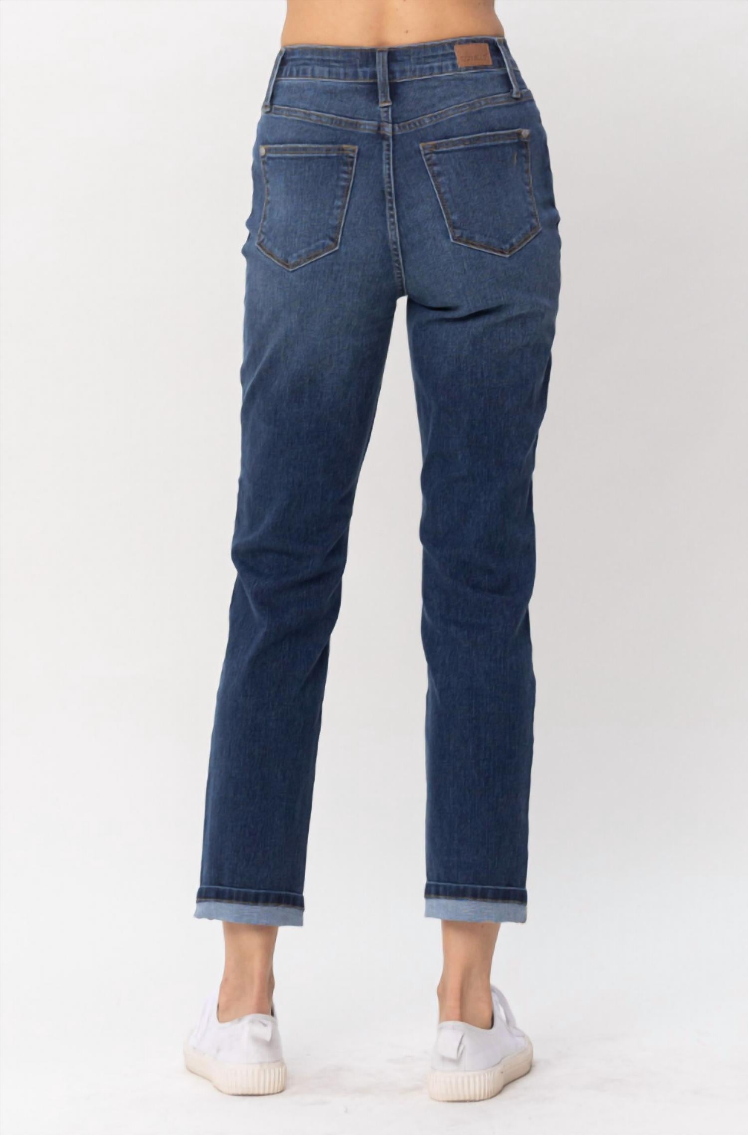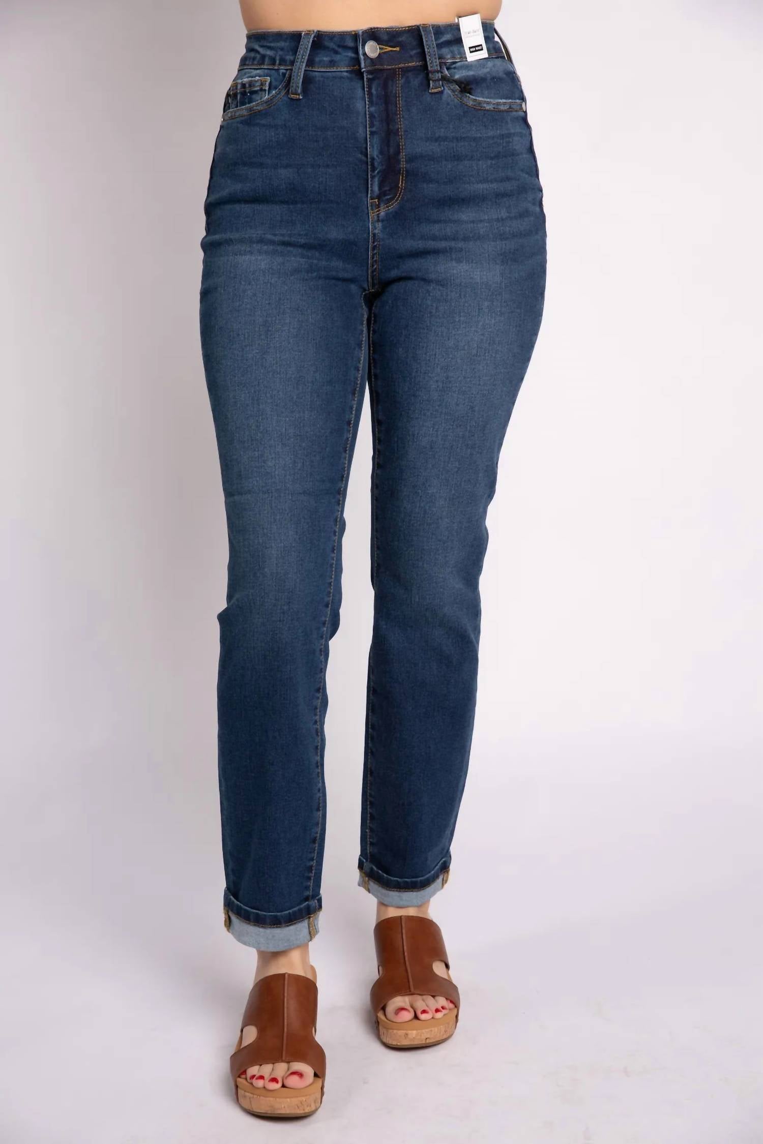 Judy Blue - Calça jeans boyfriend de cintura alta com punho denim