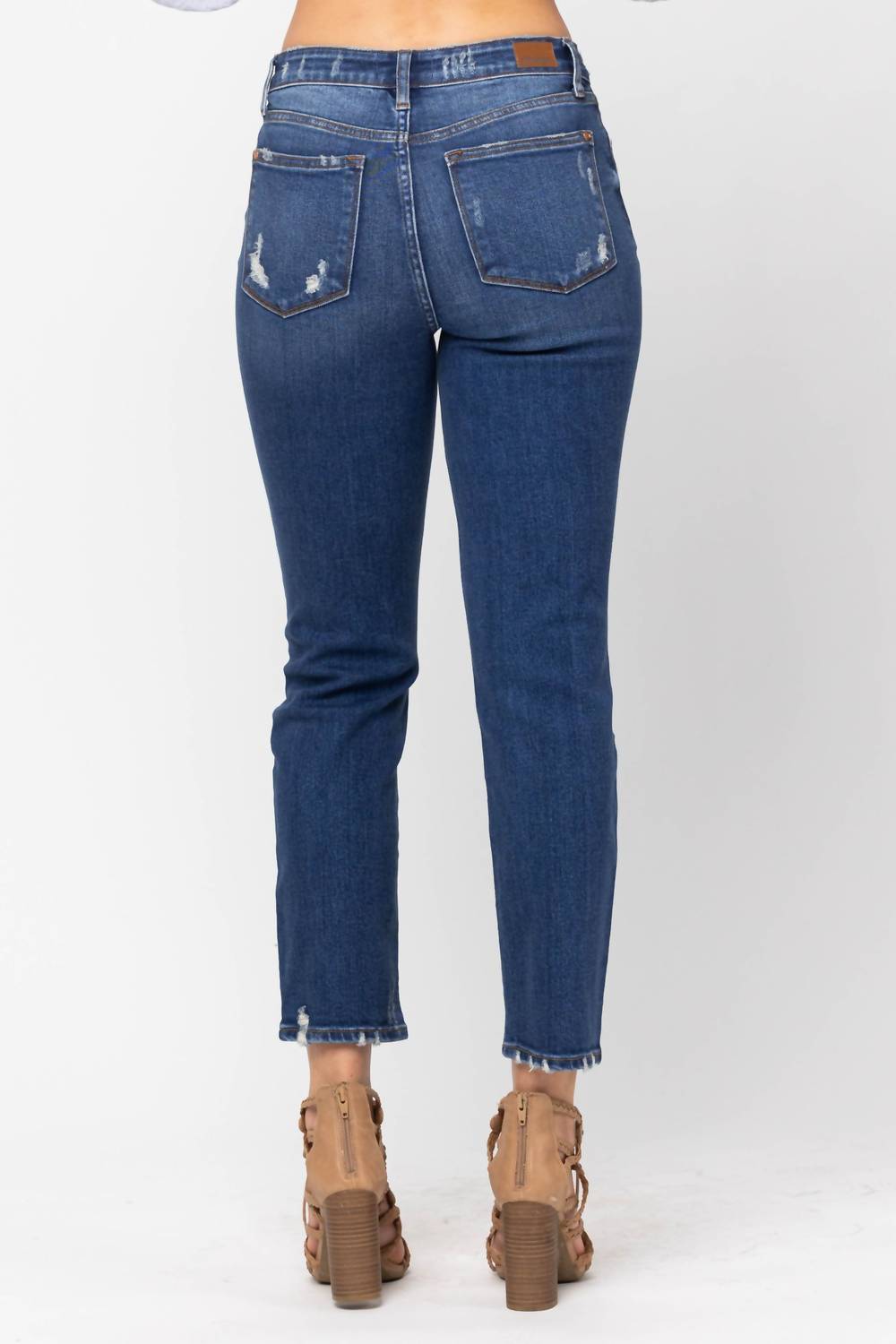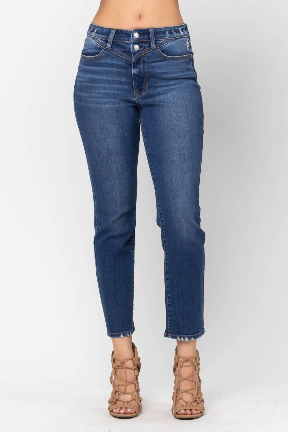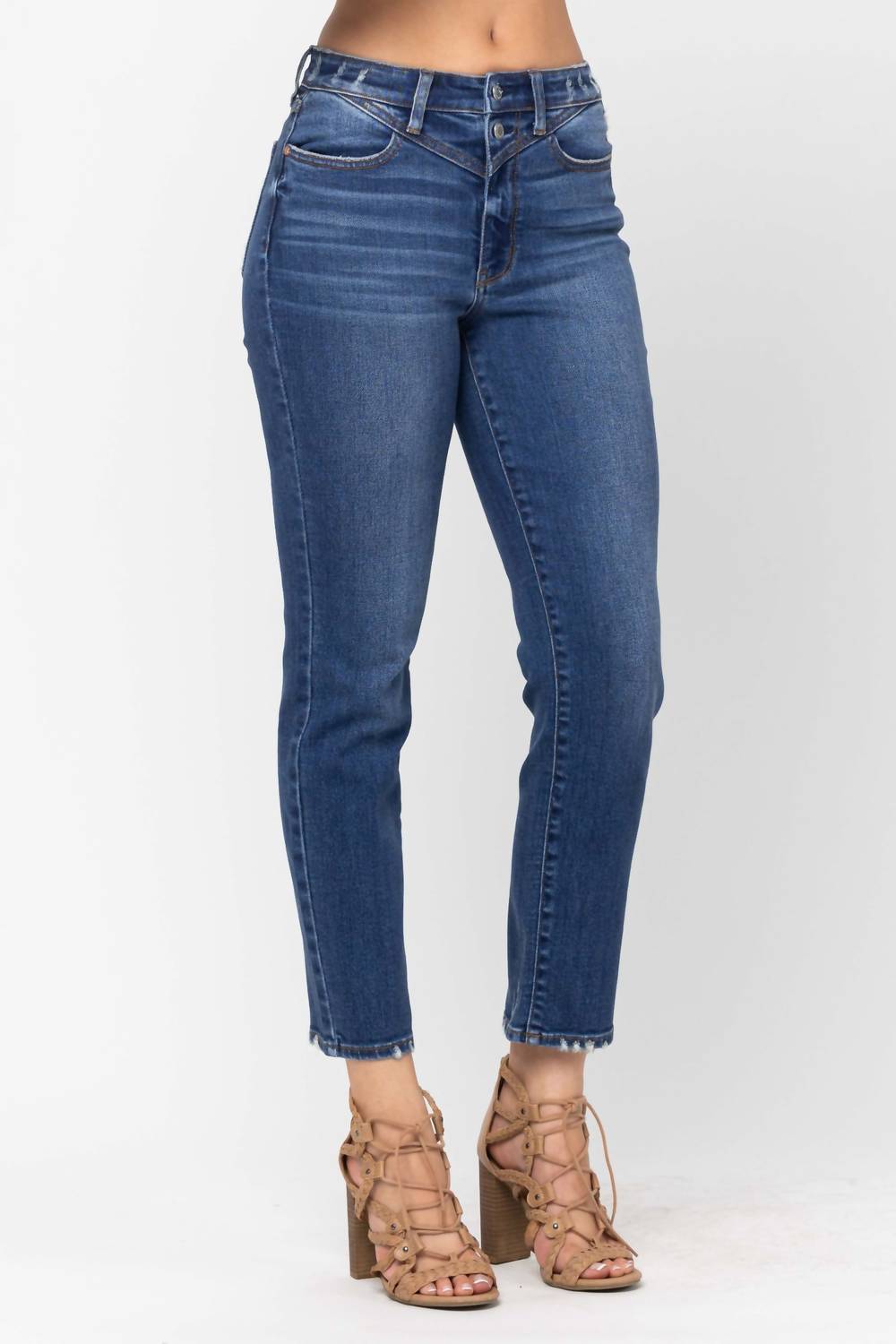 Conheça a Calça Jeans Judy Blue de Cintura Alta com Pala Frontal e Corte Slim Fit, que oferece a combinação perfeita de conforto e estilo em um tom azul sólido. Esta calça jeans apresenta cintura alta e caimento justo, além de corte reto para uma silhueta moderna. Composta por 93% algodão, 5% poliéster e 2% elastano, possui 28 cm de altura na frente e 71 cm de costura interna. Fechamento: Botão. Cuidados: Vire do avesso, lave em água fria, seque ao ar livre ou na secadora em temperatura baixa. A modelo veste tamanho 1 (altura 1,78 m, cintura 62 cm, quadril 96 cm). Ideal para a primavera, esta calça jeans com lavagem escura combina sofisticação com versatilidade.