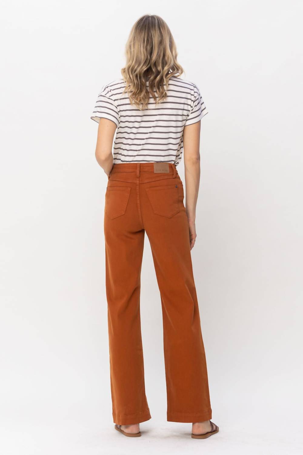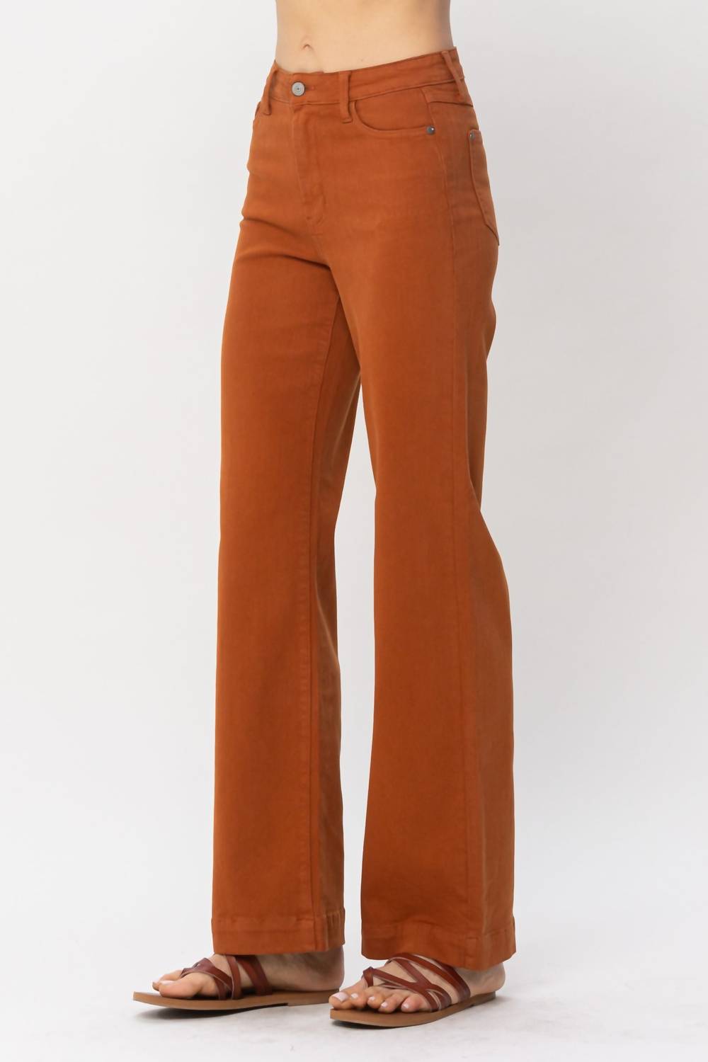 Apresentamos a Calça Jeans de Cintura Alta com Perna Larga e Tintura de Garment da Judy Blue, perfeita para um look descontraído e estiloso. Com composição de 93% Algodão, 6% Poliéster e 1% Elastano, esta calça jeans oferece elasticidade confortável em um chamativo tom Laranja-Auburn. O design de perna larga se alarga do meio da coxa até uma abertura generosa, combinado com um cós frontal alto de 28 cm e uma costura interna de 82 cm. Com fecho de botão, esta calça jeans deve ser lavada do avesso e lavada em água fria, secando ao ar livre ou em temperatura baixa. Esta calça jeans tem um caimento generoso, então considere escolher um tamanho menor para um caimento perfeito.