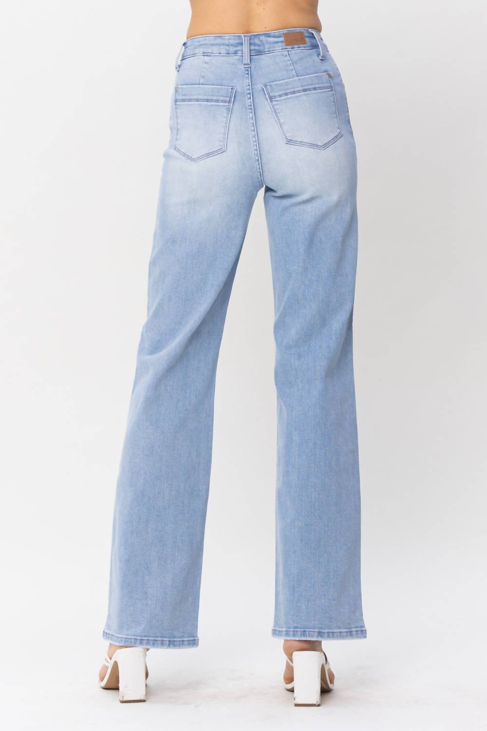 Judy Blue - Calça jeans de cintura alta com detalhes de bolso e perna larga