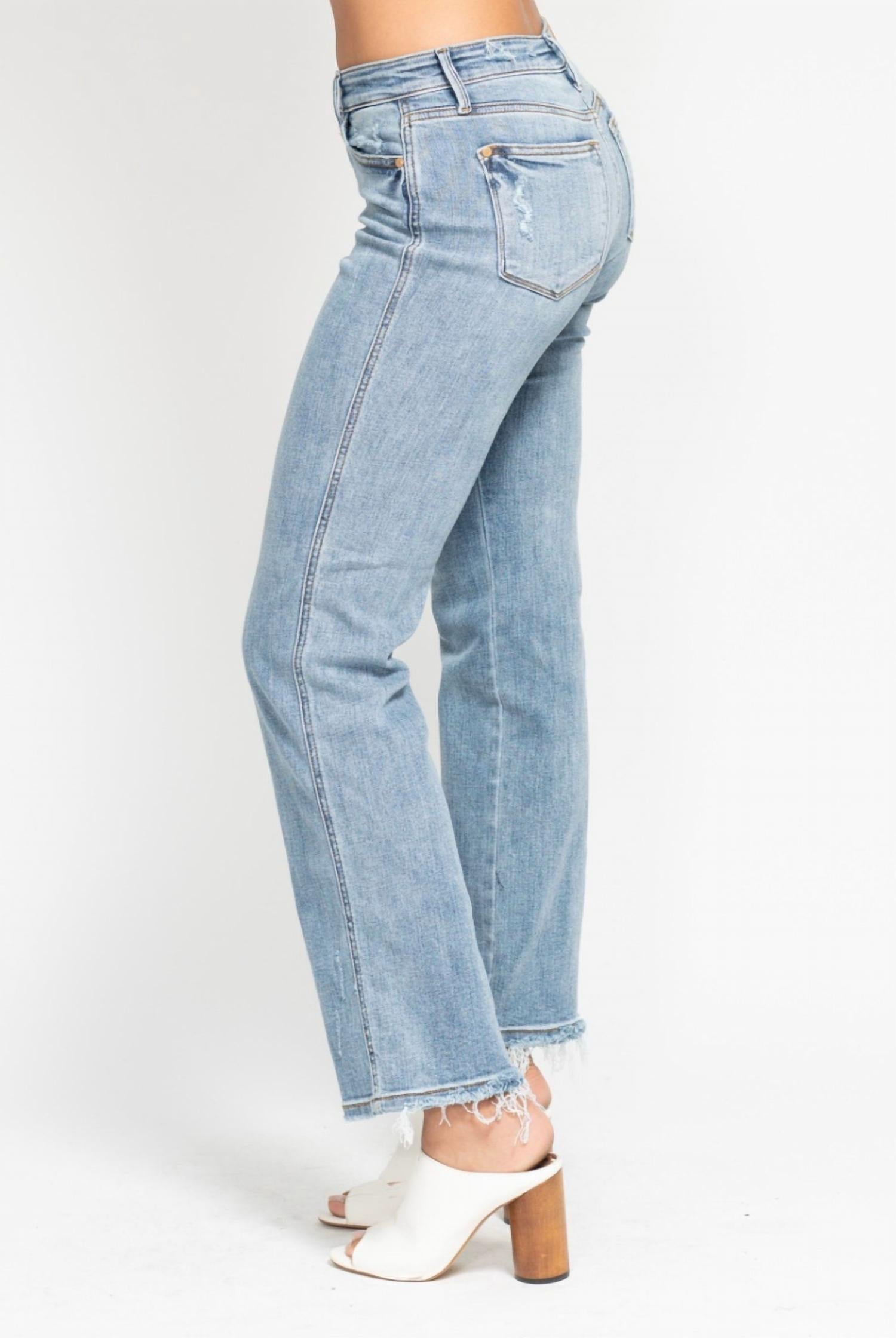 Combine esta calça jeans reta com sapatilhas, sandálias ou até mesmo saltos! Não tem como errar. Aposte no estilo casual com a calça jeans Judy Blue Mid Rise Dad. Esta calça jeans com lavagem clara apresenta um corte relaxado e uma silhueta clássica de perna reta, com cintura média de 25 cm e uma confortável costura interna de 81 cm. Confeccionada em uma versátil mistura de algodão: 93% algodão, 6% poliéster e 1% elastano, oferece um caimento confortável e ajustado às curvas, com um tamanho ligeiramente maior — ideal se você prefere um tamanho menor para um ajuste perfeito. Com um prático fecho de botão e bolsos essenciais, esta calça jeans é uma peça essencial em qualquer guarda-roupa.