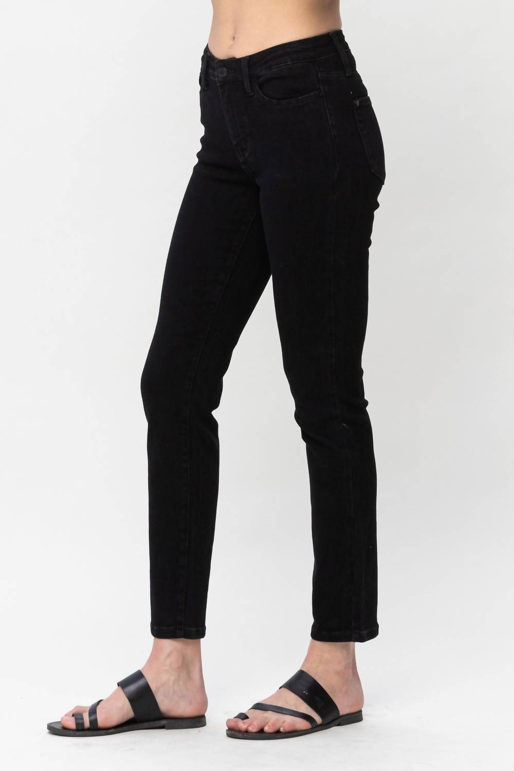 Descubra a combinação perfeita de conforto e estilo com a Calça Jeans Slim Fit de Cintura Média da Judy Blue na cor preta, ideal para um look chique para um jantar. Composta por 69% algodão, 23% poliéster, 7% rayon e 1% elastano, esta calça jeans oferece um corte slim elegante com cintura média confortável e um prático fecho de botão. Com 23,8 cm de cintura frontal e 73 cm de comprimento, esta calça foi projetada para valorizar o corpo, com bolsos funcionais para maior praticidade. A modelo veste tamanho 1 (altura: 1,78 m, cintura: 63 cm, quadril: 91 cm).