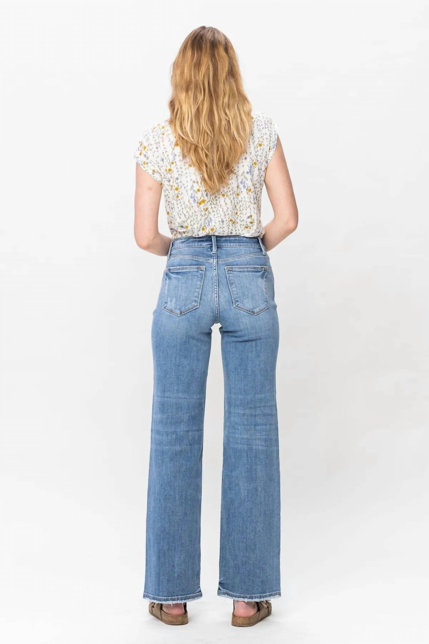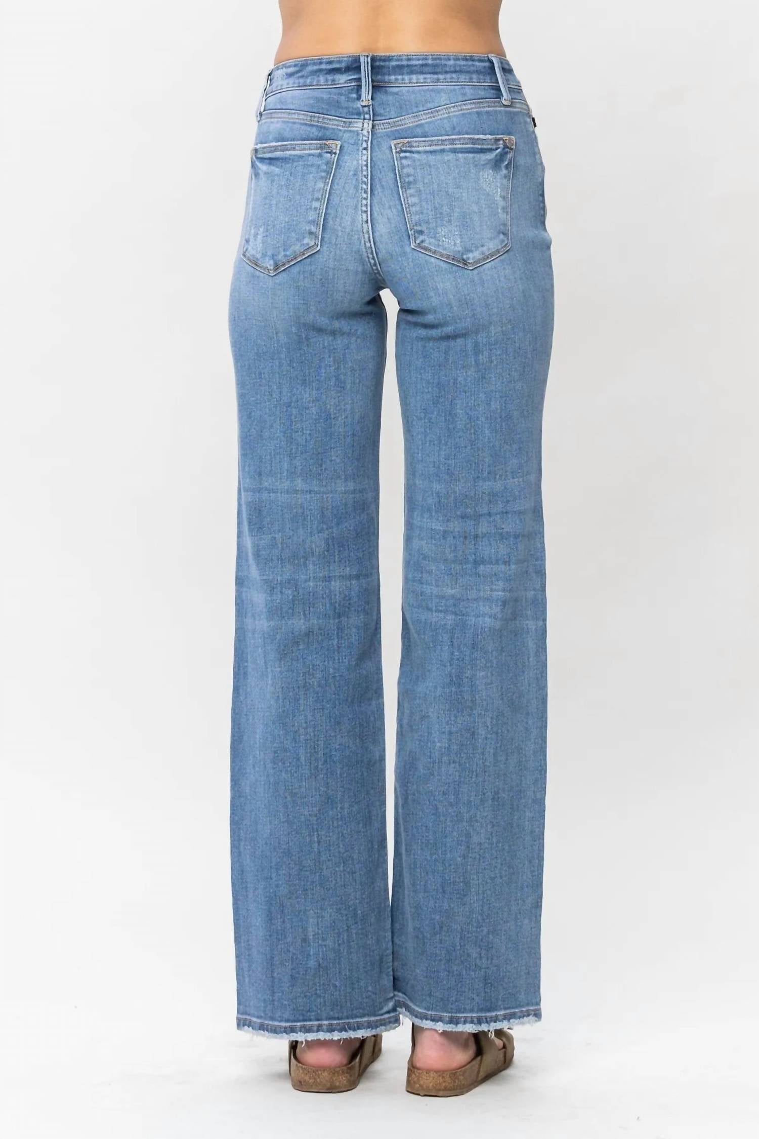 Judy Blue - Calça Jeans de Cintura Média e Perna Larga