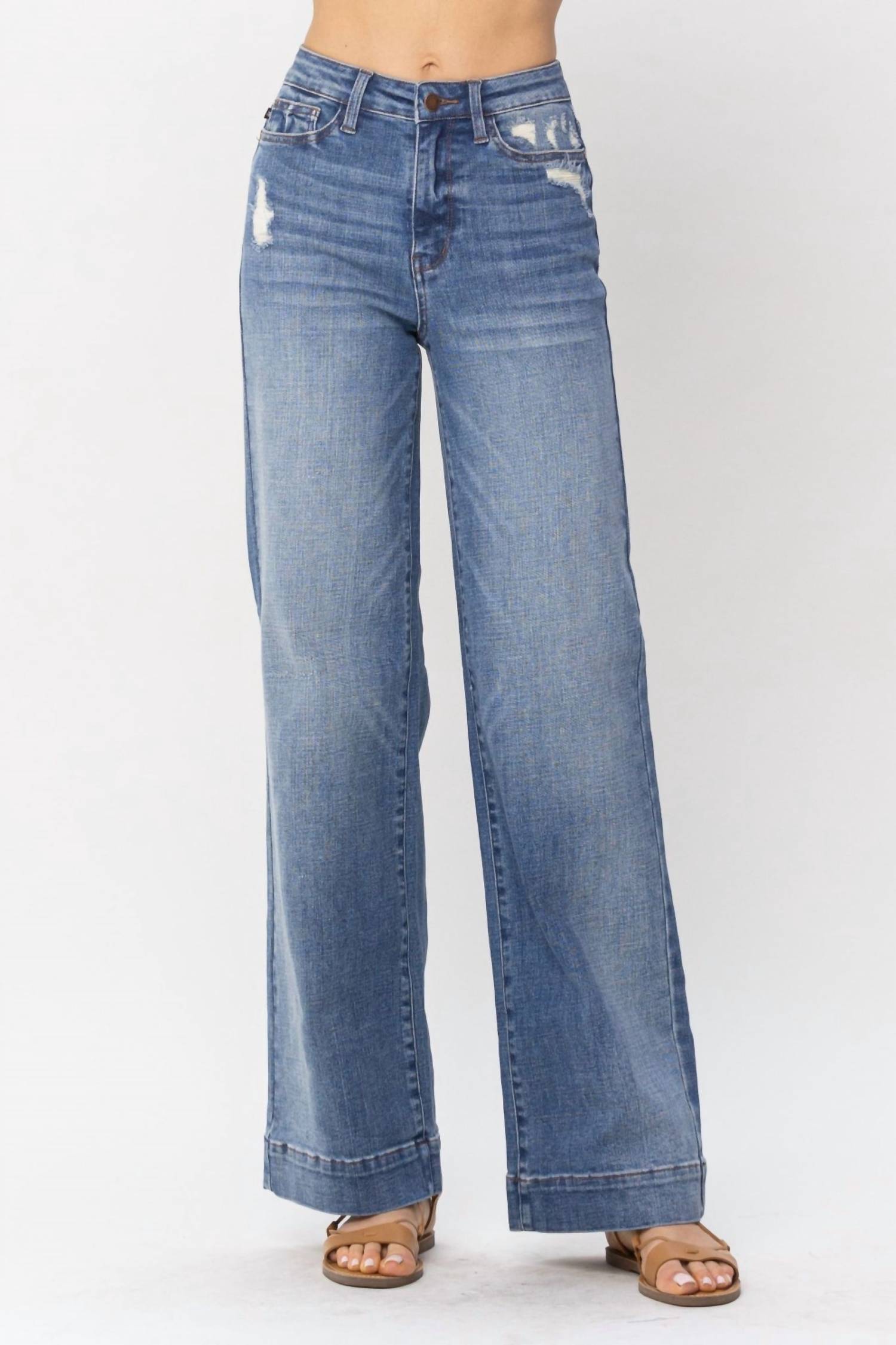 Coloque sua camiseta favorita dentro deste jeans de cintura alta para uma sensação mais casual e descolada. Apresentamos a calça jeans Phoenix Wide Leg da Judy Blue, um jeans de cintura alta projetado para estilo e conforto. Confeccionada em uma mistura macia de algodão, esta calça jeans azul apresenta um caimento clássico com perna larga e fecho de botão. O visual levemente desgastado adiciona um toque moderno, enquanto o material elástico garante um ajuste firme. Para maior durabilidade, lave à mão com água fria e cores escuras e deixe secar na horizontal.