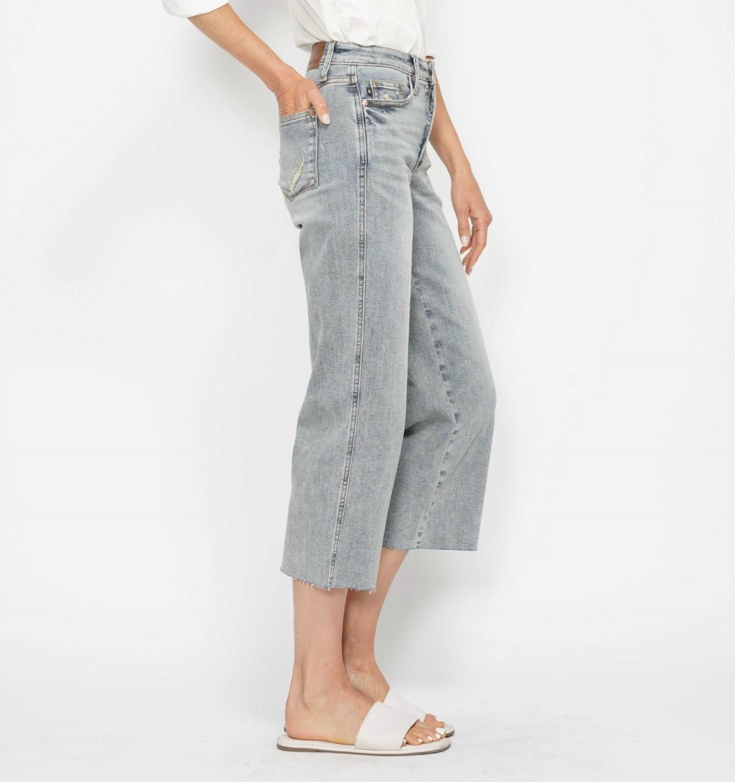 Judy Blue - Calça Jeans Cropped com Controle de Barriga e Perna Larga