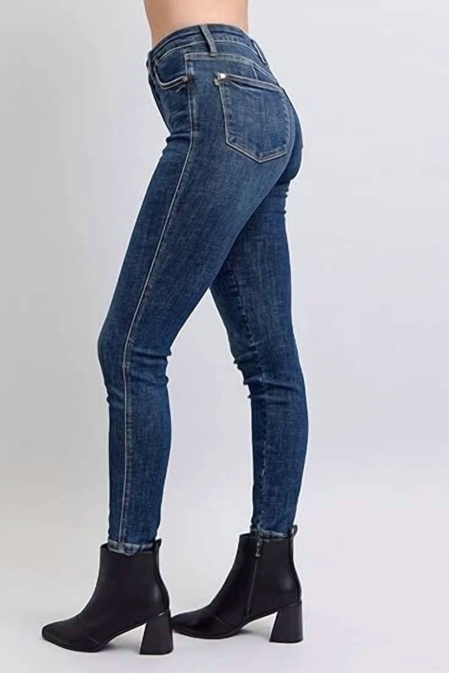 Uma calça jeans skinny que é estilosa e confortável. Adoramos esse modelo porque combina com botas, ou sem! A Calça Jeans Tummy Control Dark Wash da Judy Blue é um item essencial para a estação, oferecendo um caimento alto chique e confortável. Esta calça jeans skinny feminina é confeccionada em uma mistura de algodão, com composição de 91,4% algodão, 7,4% poliéster e 1,2% elastano, garantindo flexibilidade e durabilidade. Com fecho de botão, esta calça jeans azul lisa vem com bolsos funcionais e corte skinny, com 29 cm de cintura e 73 cm de entrepernas. Perfeita para o streetwear de outono, ela pode ser facilmente lavada na máquina e seca na secadora.