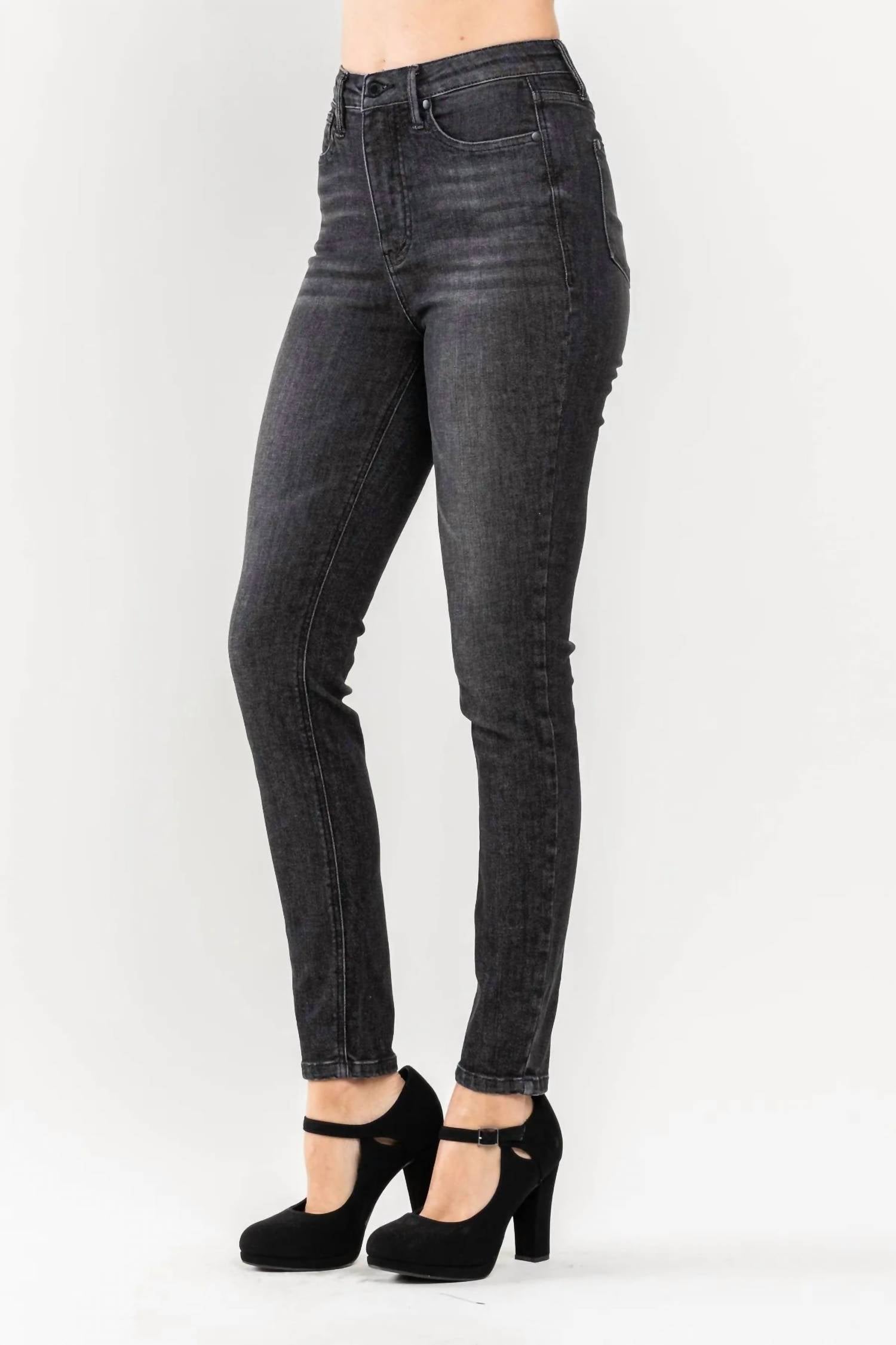Uma calça jeans skinny que é estilosa e confortável. Adoramos esse modelo porque combina com botas, ou sem! Vista a deslumbrante Calça Jeans Skinny Tummy Control da Judy Blue, uma combinação perfeita de conforto e estilo chique. Esta calça jeans skinny de cintura alta, com lavagem preta clássica, apresenta um inovador sistema de controle de barriga para uma silhueta elegante. Composição: 92% algodão, 7% poliéster e 1% elastano, que garante elasticidade e estrutura, enquanto a costura interna de aproximadamente 73 cm e o cós de aproximadamente 28 cm oferecem um ajuste que se ajusta às curvas, mantendo a forma ao longo do dia. Tipo de fecho: botão. Perfeita para qualquer ocasião, esta calça jeans é uma peça essencial em qualquer guarda-roupa.