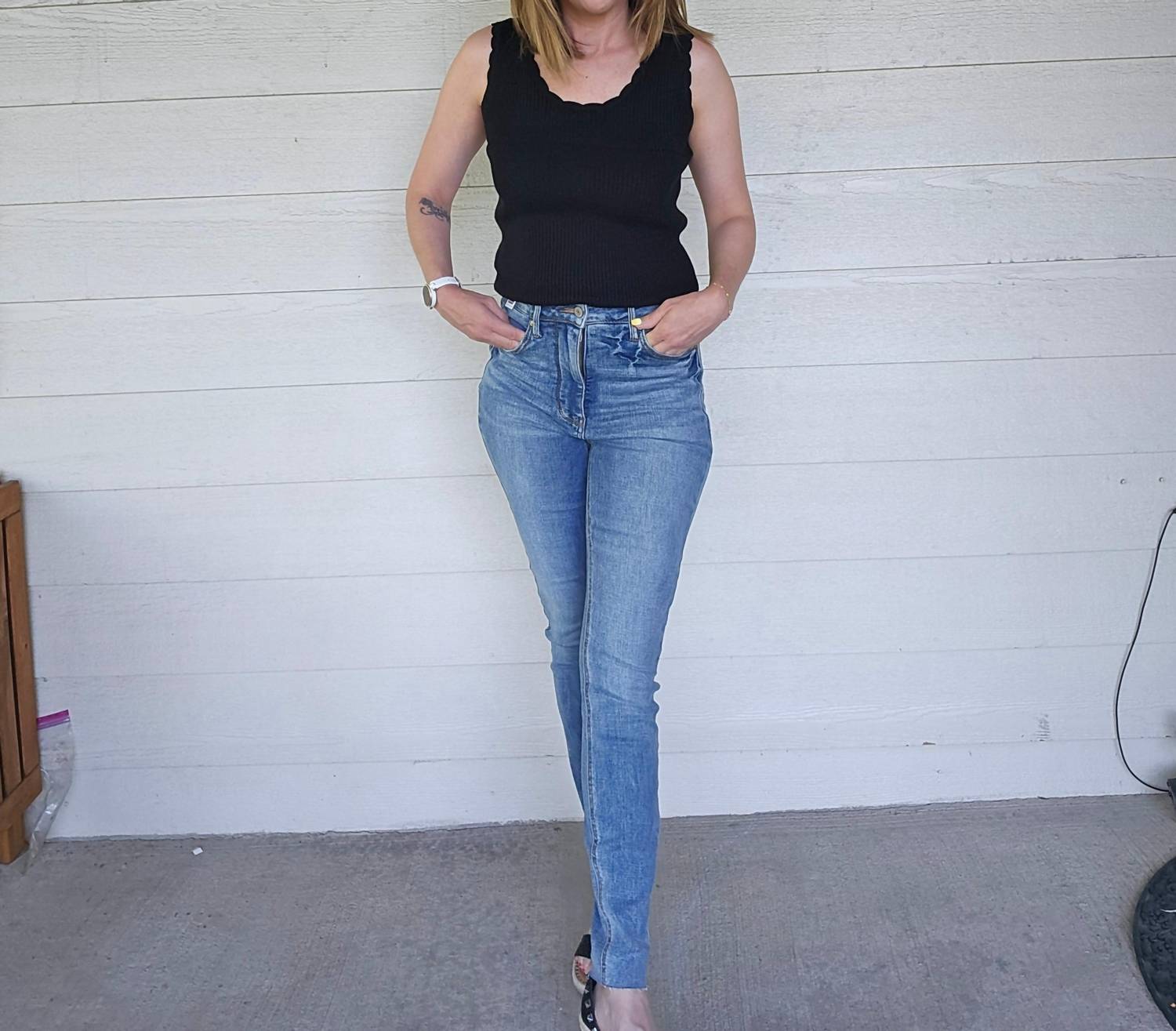 A calça skinny perfeita para aquelas botas estilosas desta estação! Incremente seu guarda-roupa com a Calça Jeans Skinny Tummy Control da Judy Blue, habilmente confeccionada para valorizar sua silhueta. Esta calça jeans apresenta um tom azul clássico, cintura alta e bolsos laterais com inspiração vintage, que proporcionam controle eficaz da barriga e um toque chique. O corte skinny é acentuado por uma estampa sólida para um visual atemporal. Fechamento: Botão. As instruções de cuidado recomendam lavagem à mão e secagem no varal para manter a qualidade premium.