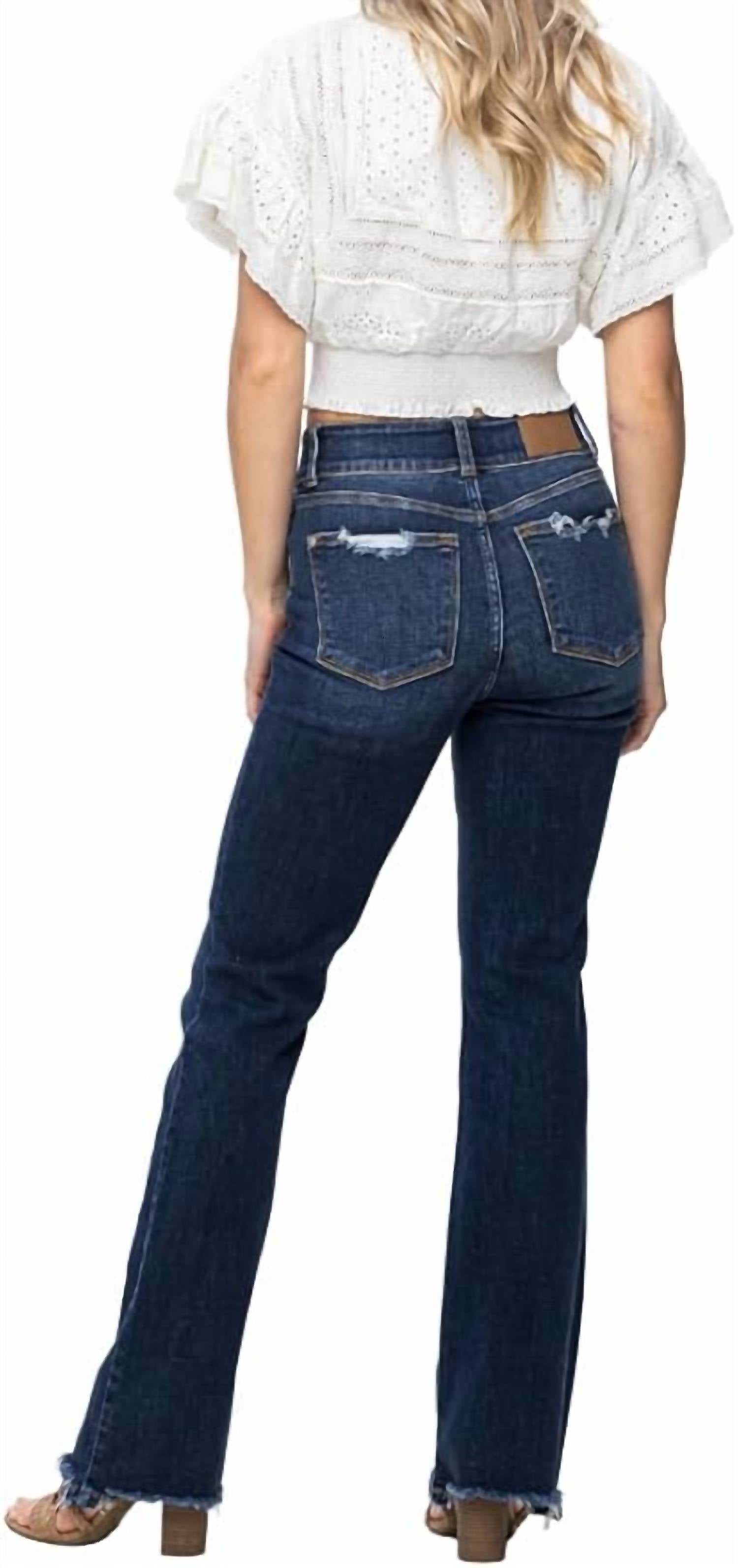 Basta adicionar botas! Esta calça jeans lisa apresenta um design boot cut atemporal, com bainhas desfiadas e bolsos práticos. Ela pode ser lavada na máquina e deve ser seca na horizontal para obter melhores resultados. Ideal para um estilo despojado e uso diário.